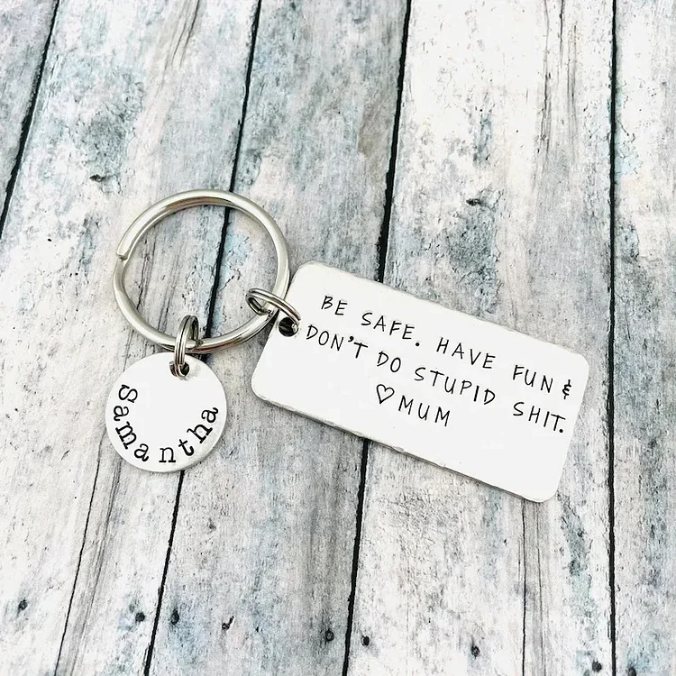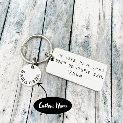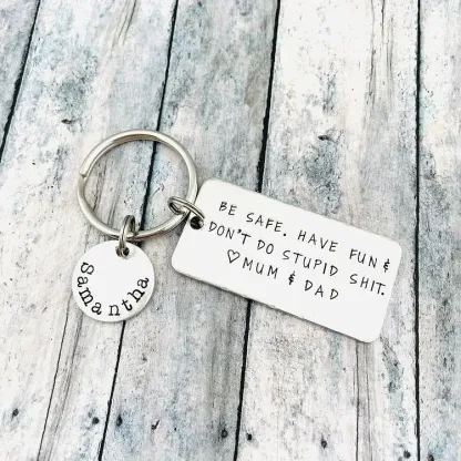 The keychain engraved with "Be safe. Have fun. Don't Do Stupid Shit" is the funny gift idea for your kids for their Birthday, Graduation, Anniversary, Christmas, Thanksgiving, etc! This keychain will be with them side by side, wherever they go so they can feel that you are always there for them. It is useful and practical but also is able to convey the meaning of your love.
