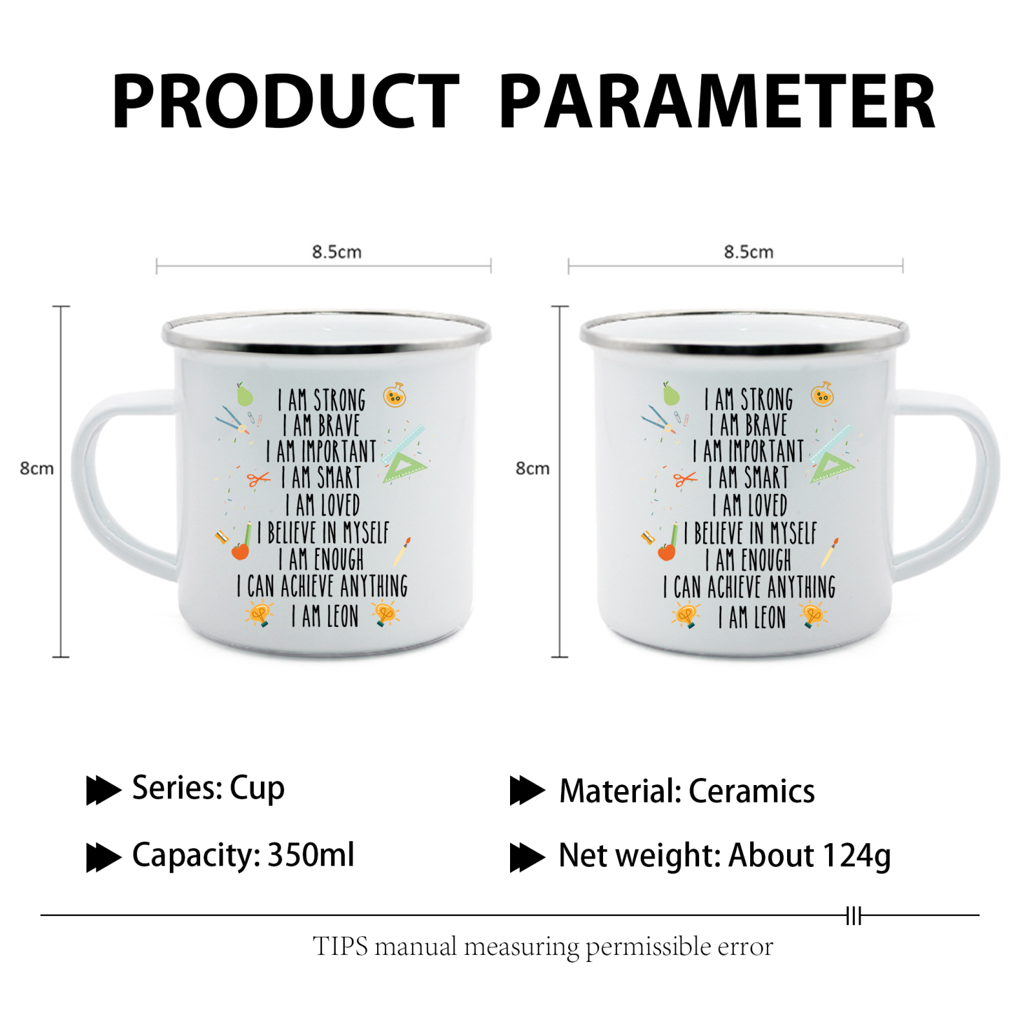 Personalized Name Enamel Mug, I Am Strong, Back To School Gift For Son/Daughter