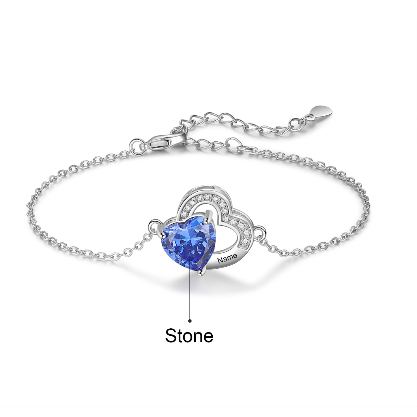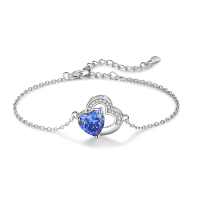 Personalized Name Heart-Shape Bracelet With 1 Birthstone Engraved Bracelet Gift For Women