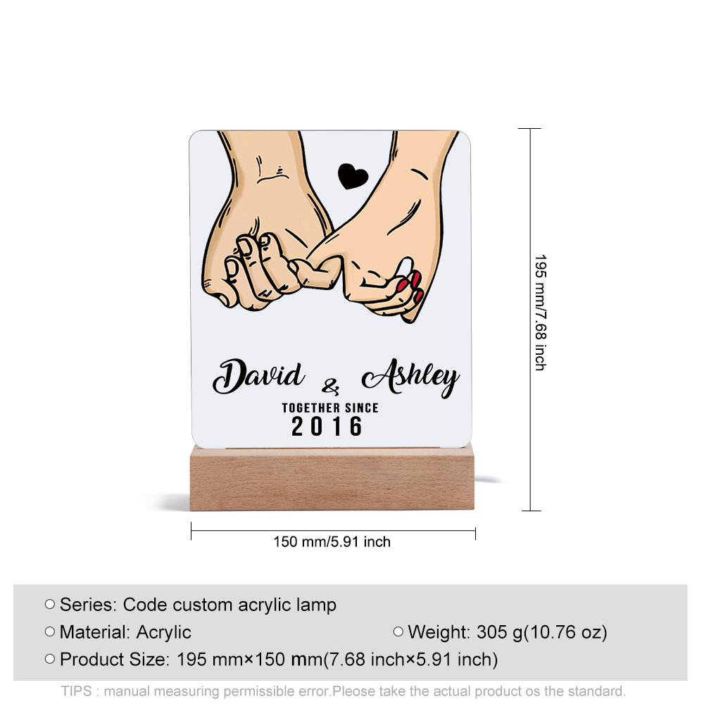 Personalized Name Hooking Acrylic Night Light, Custom Text And Year Lamp Gifts For Couple
