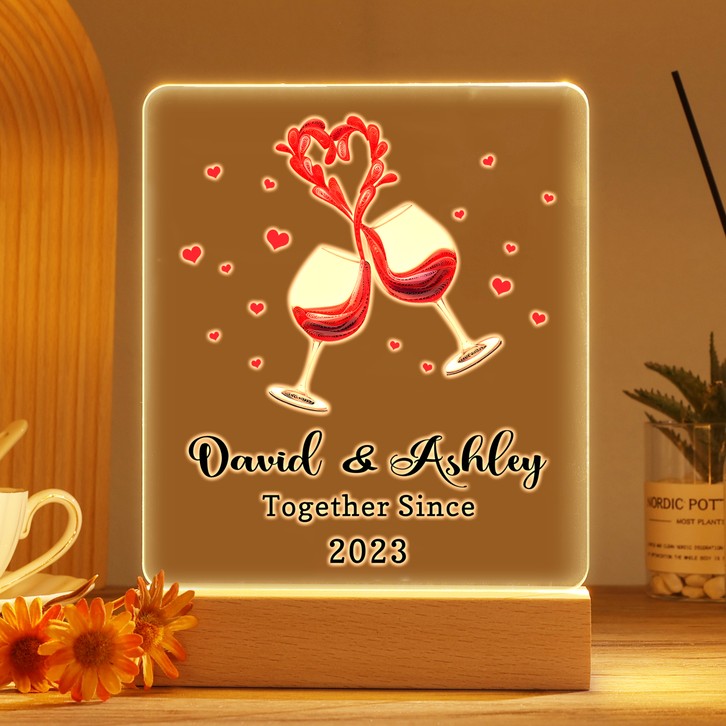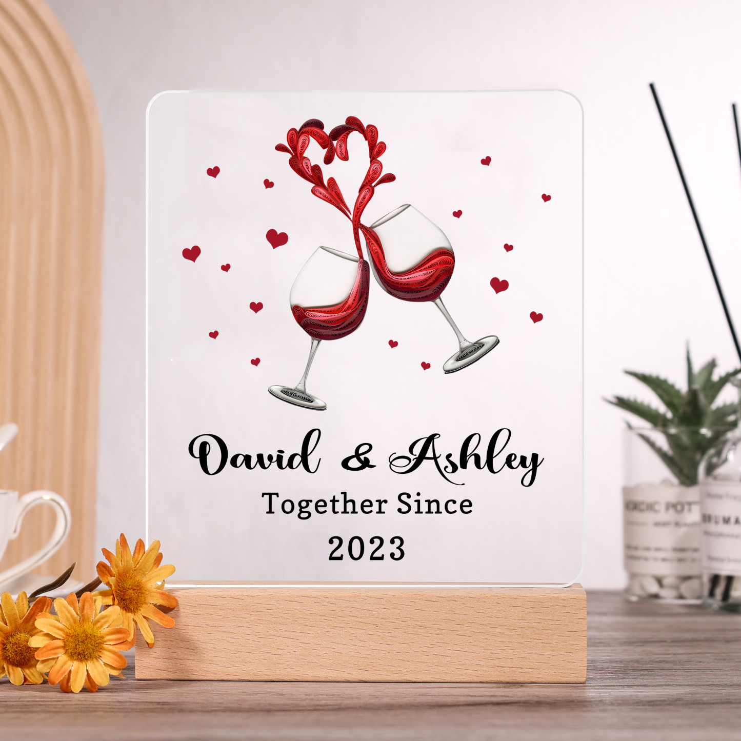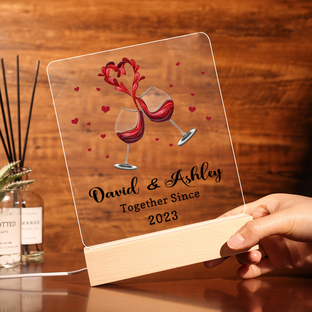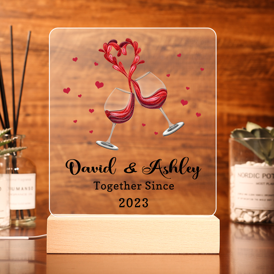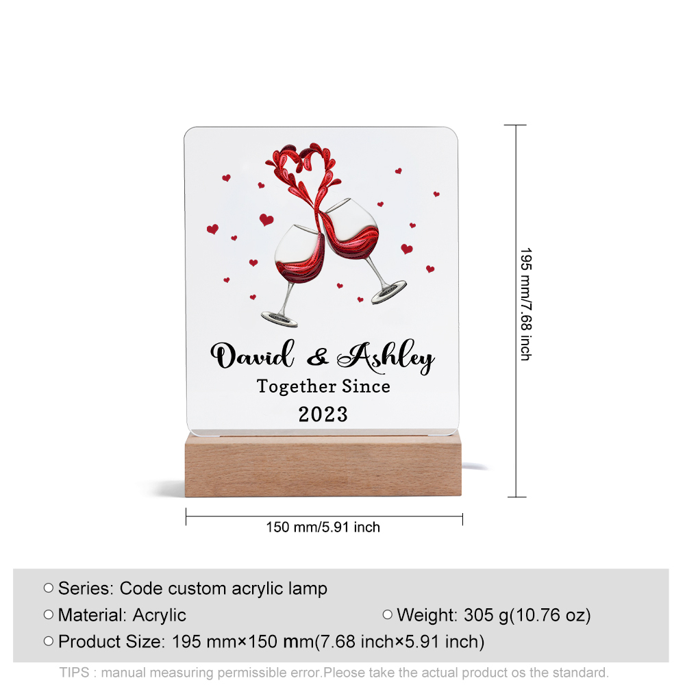 Personalized Name Hooking Acrylic Night Light, Custom Text And Year Lamp Gifts For Couple