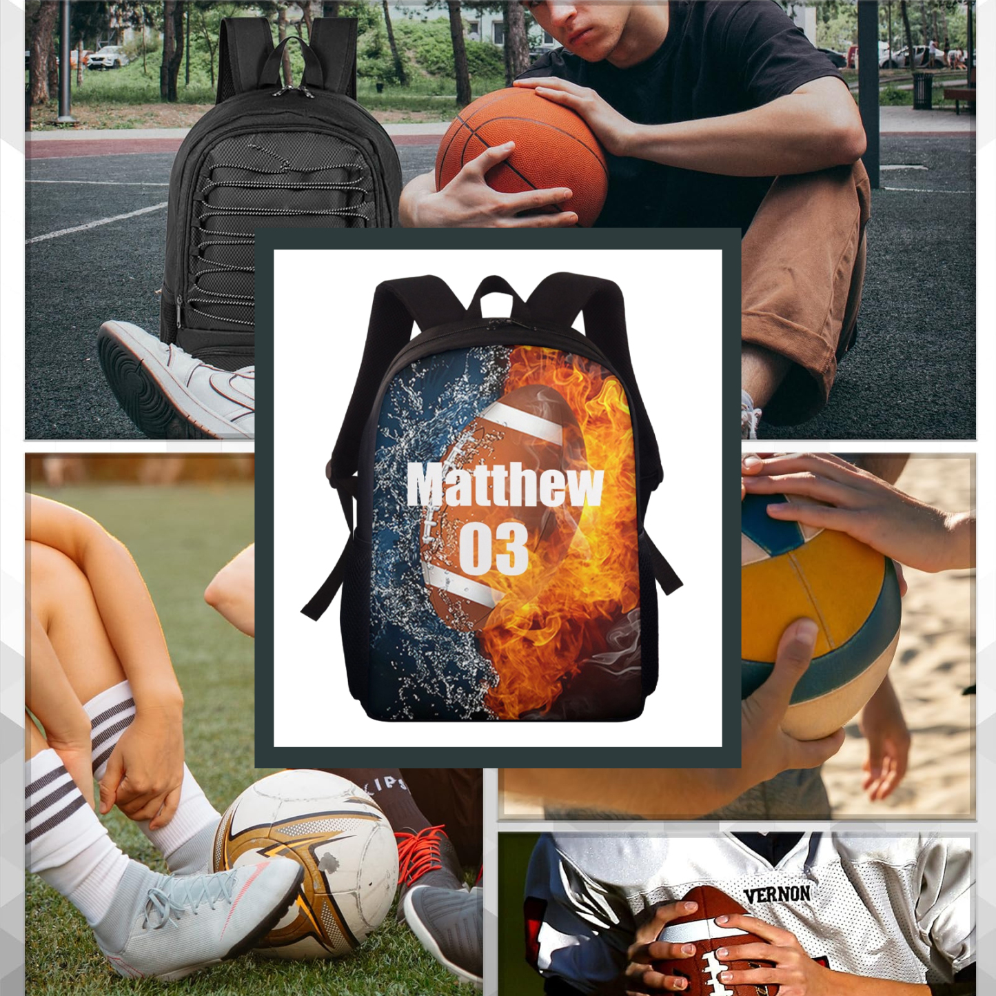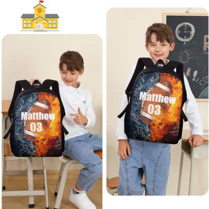 Personalized Name Jue Ball School Bag Boys Black Backpack, Customized Schoolbag Travel Bag For Kids