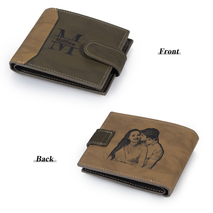 Personalized Name Leather Men's Buckle Wallet With Card Slot Engraved Letter And Photo Gift For Him