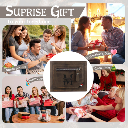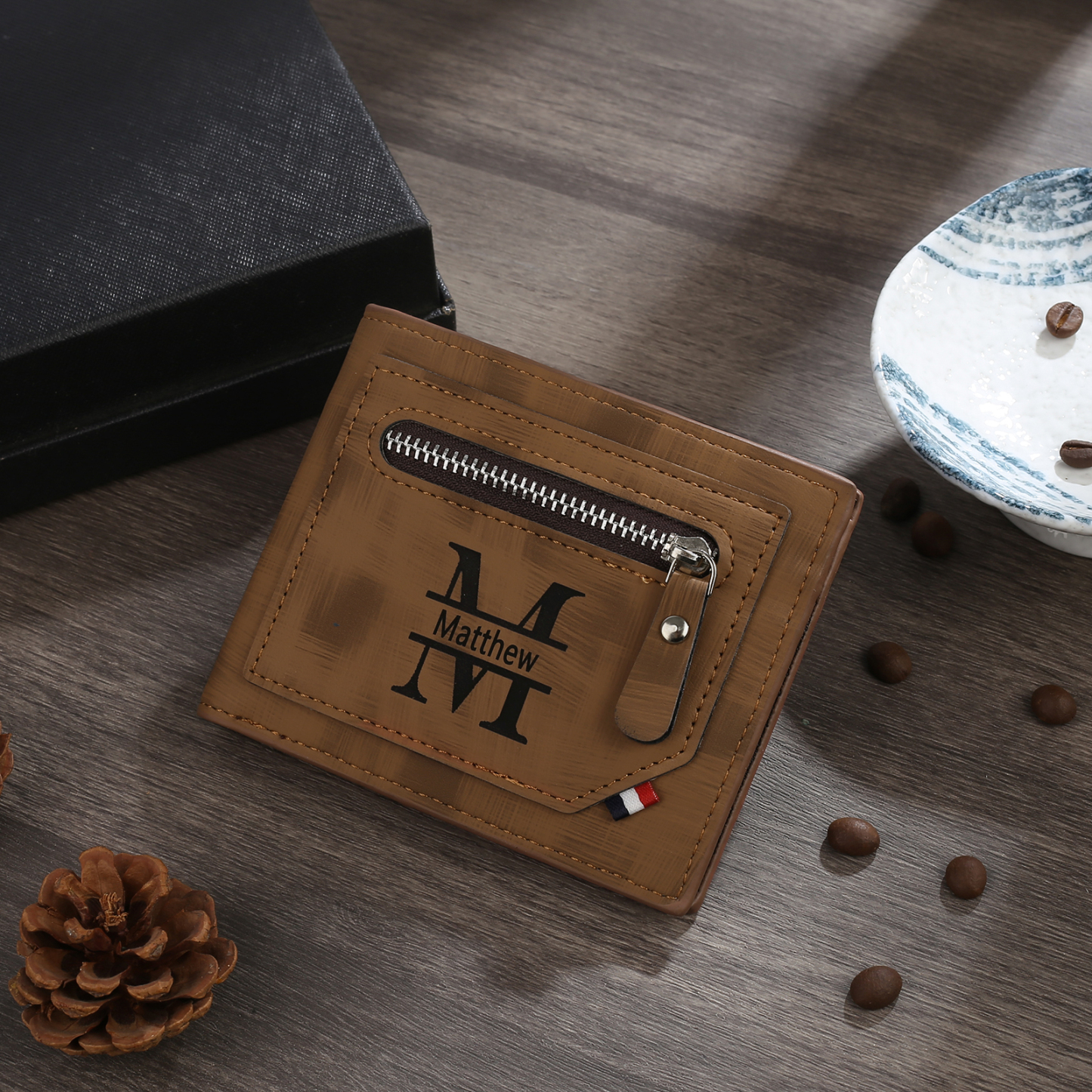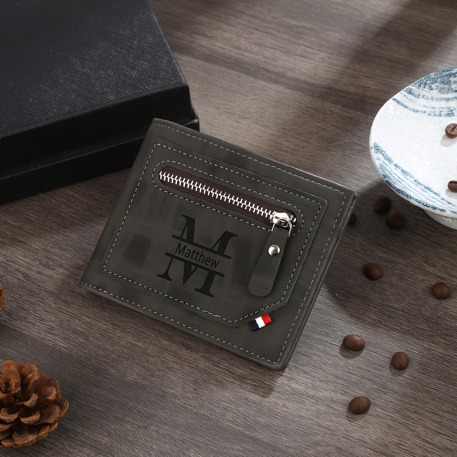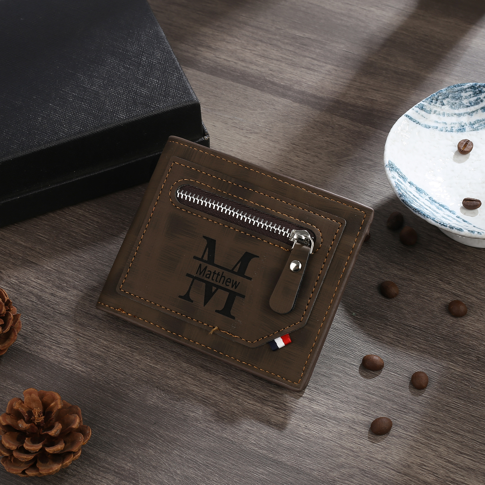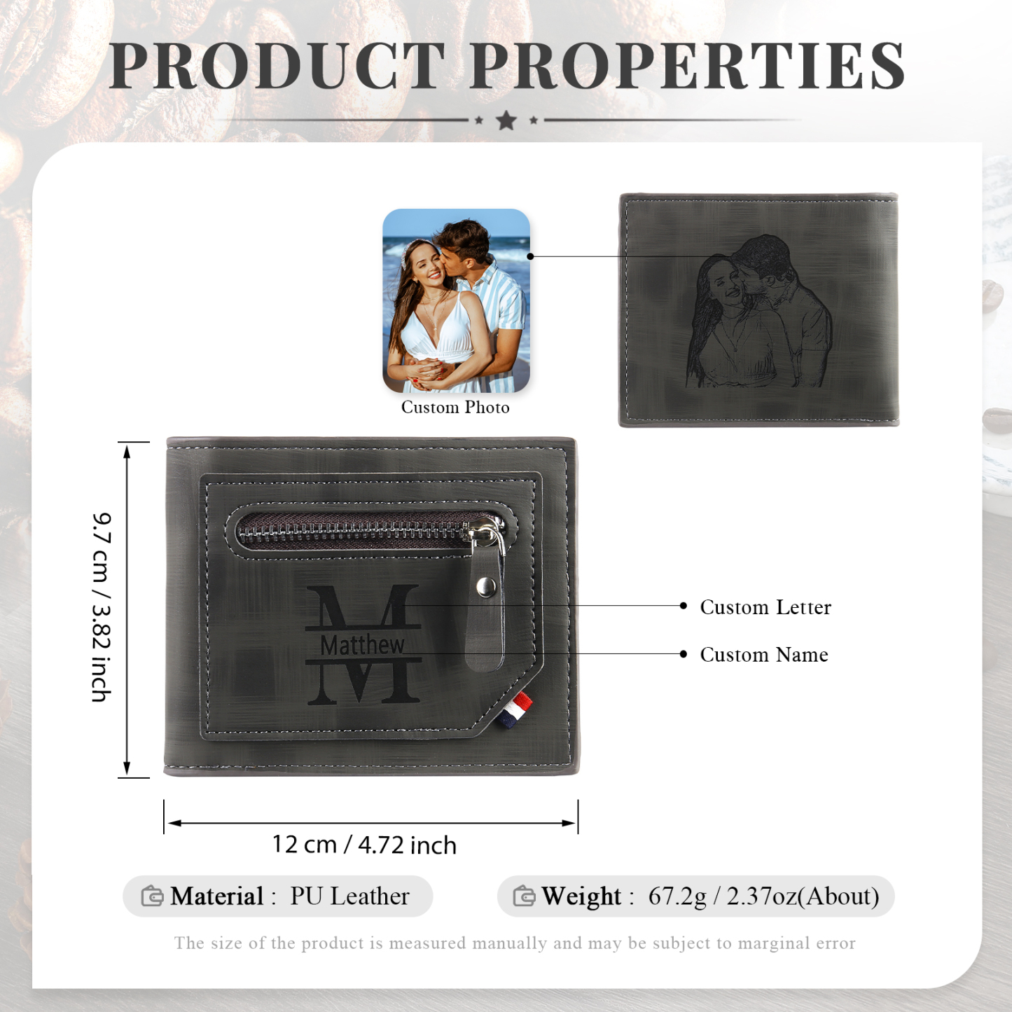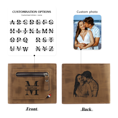 Personalized Name Leather Men's Wallet With Card Slot Engraved Letter And Photo Gift For Him