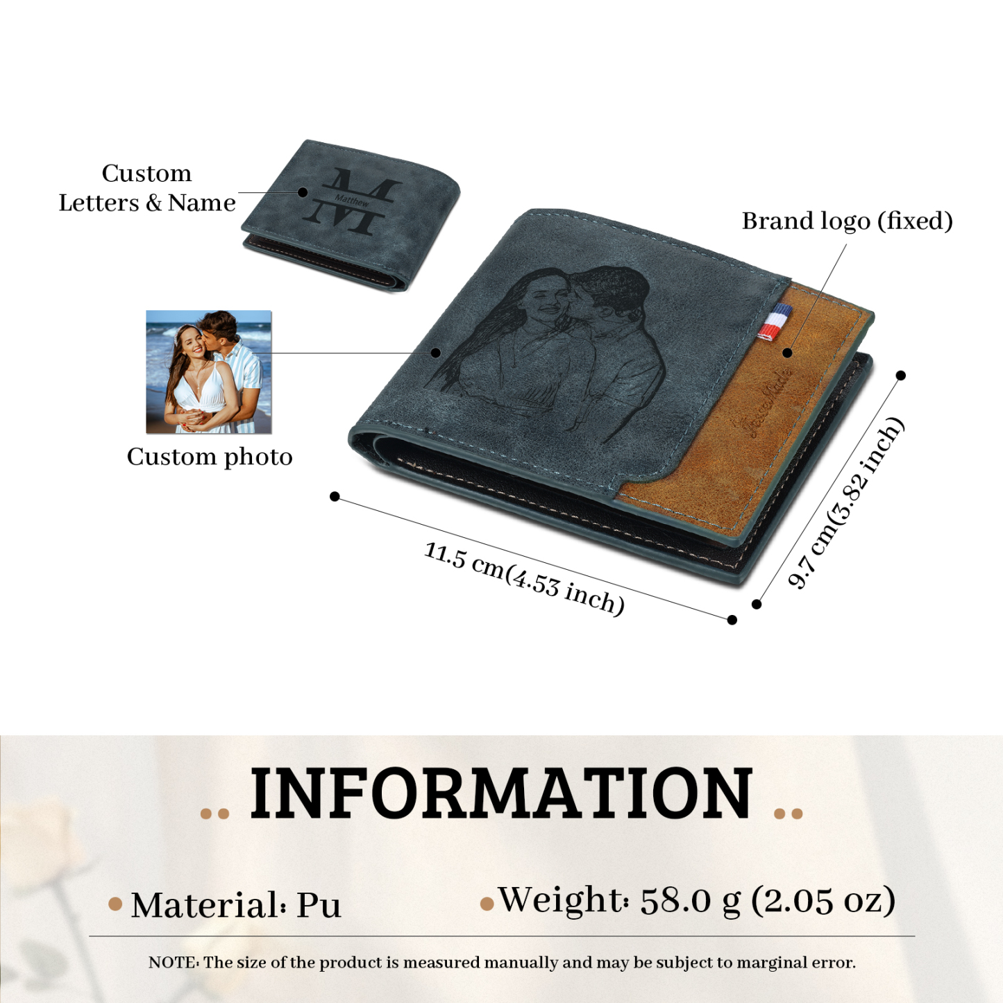 Personalized Name Leather Men's Wallet With Card Slot Engraved Letter And Photo Gift For Him