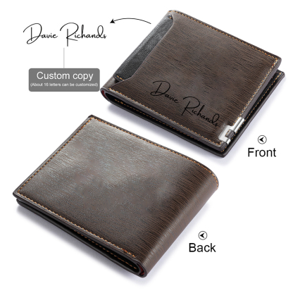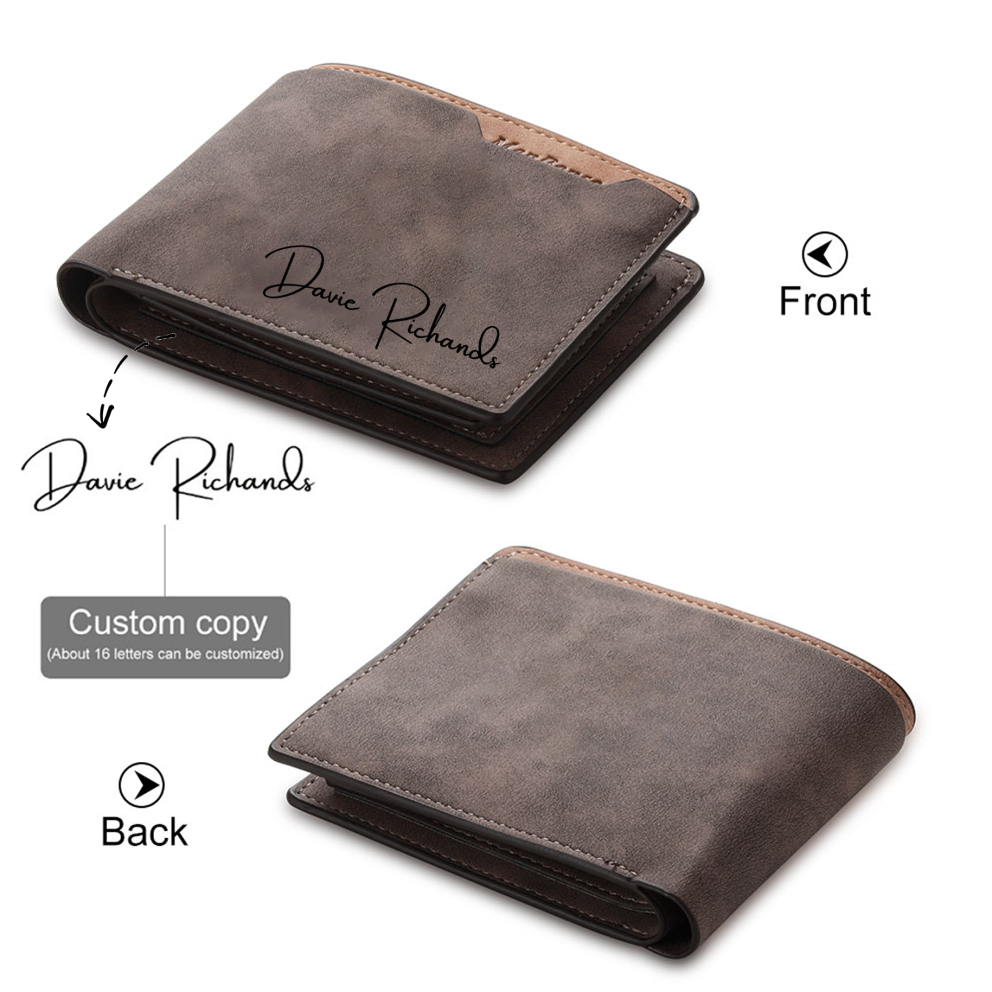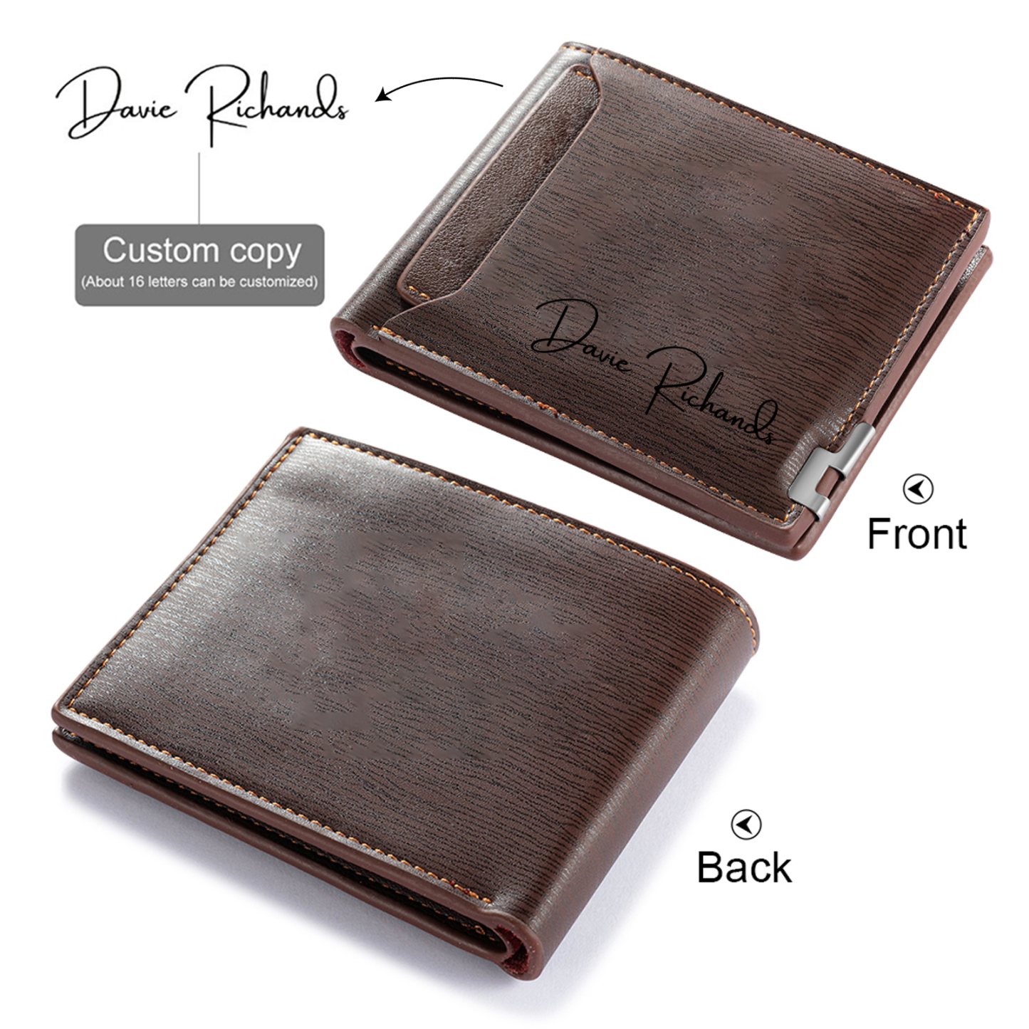 Personalized Name Leather Wallet Engraved Short Purse Folding Wallet Gifts For Men