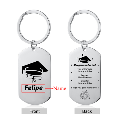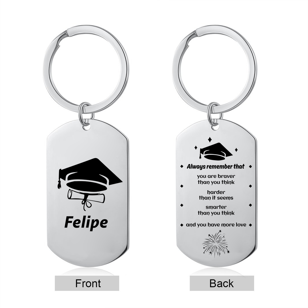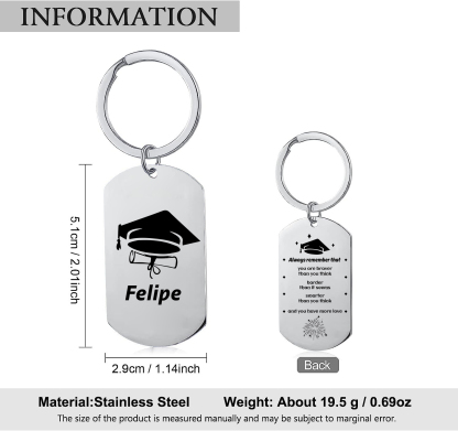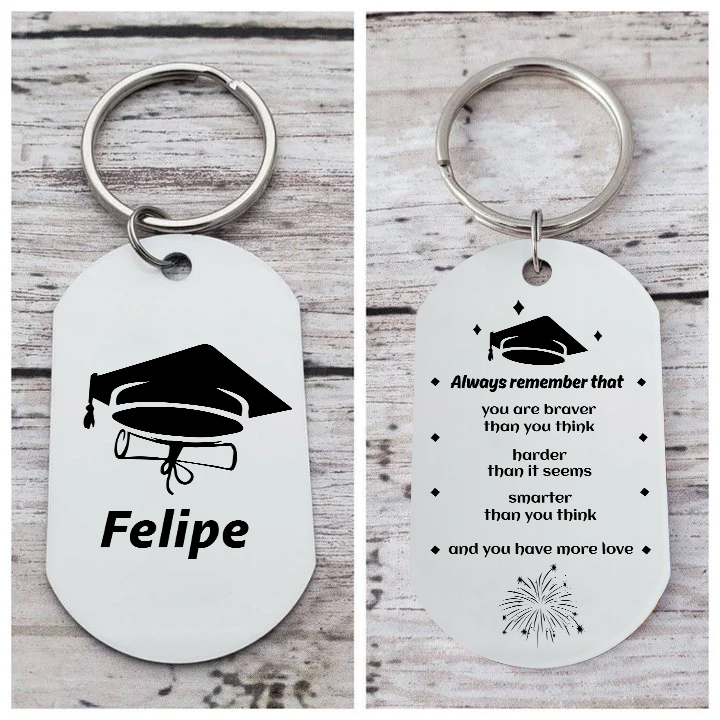 🔑🎓 Graduation is a key milestone in life, unlocking new opportunities and adventures! 🌟 Celebrate this achievement with a personalized stainless steel keychain engraved with their name. 🎁 A small token that carries great significance, just like the memories and friendships made along the way. 🎉 Order now and gift them a keepsake that will remind them of their journey every time they reach for their keys!