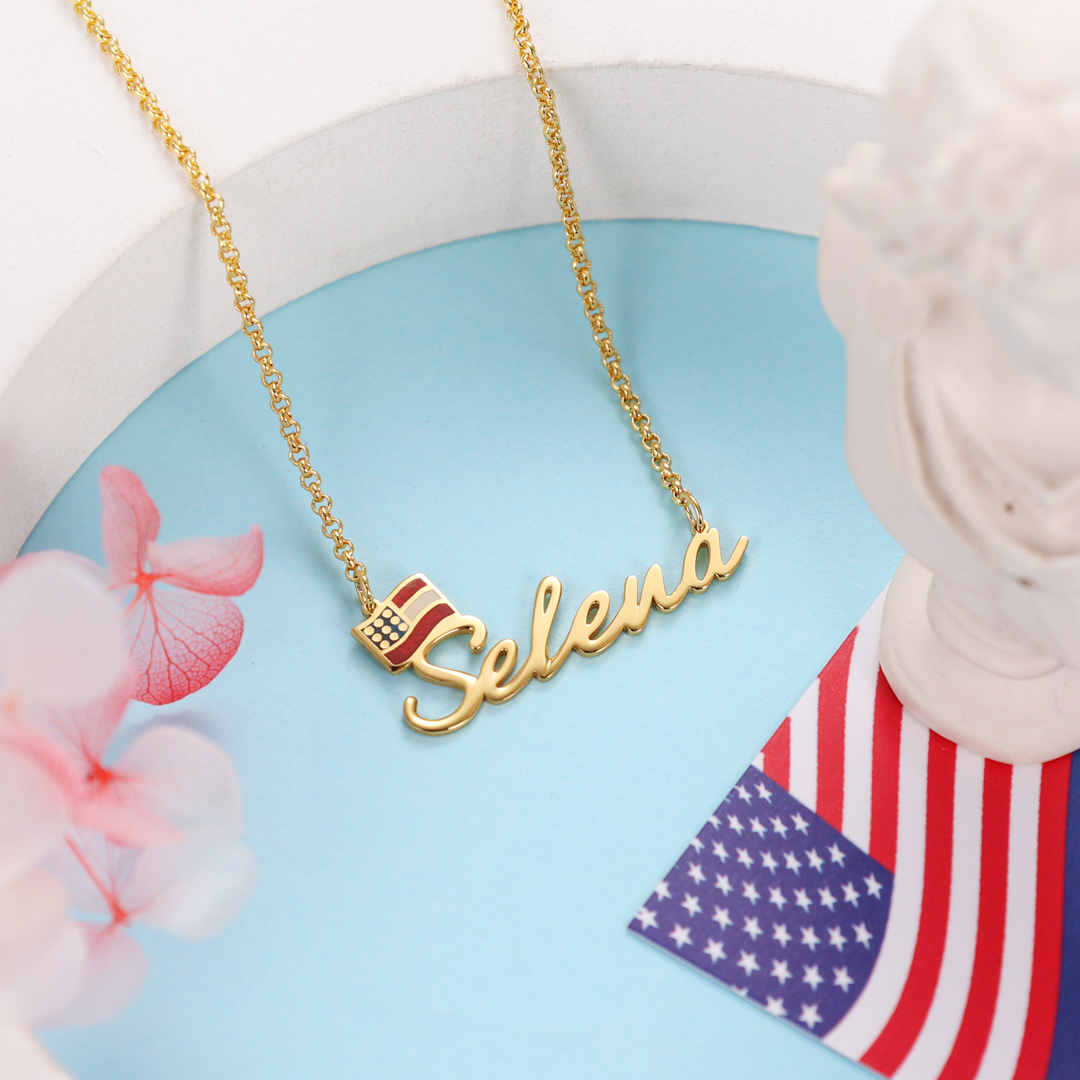 Personalized Flag Necklace Custom 1 Name Necklace Gift For Women