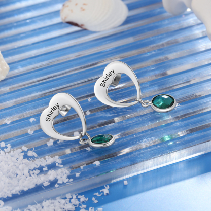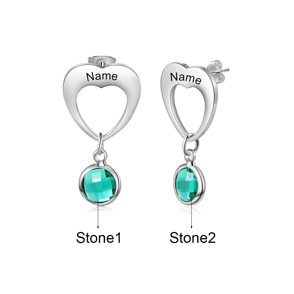 Personalized Name Pendant Earrings with Birthstone for Women
