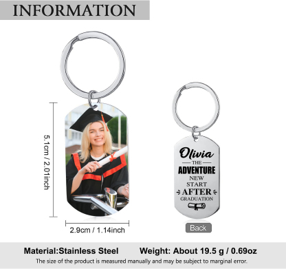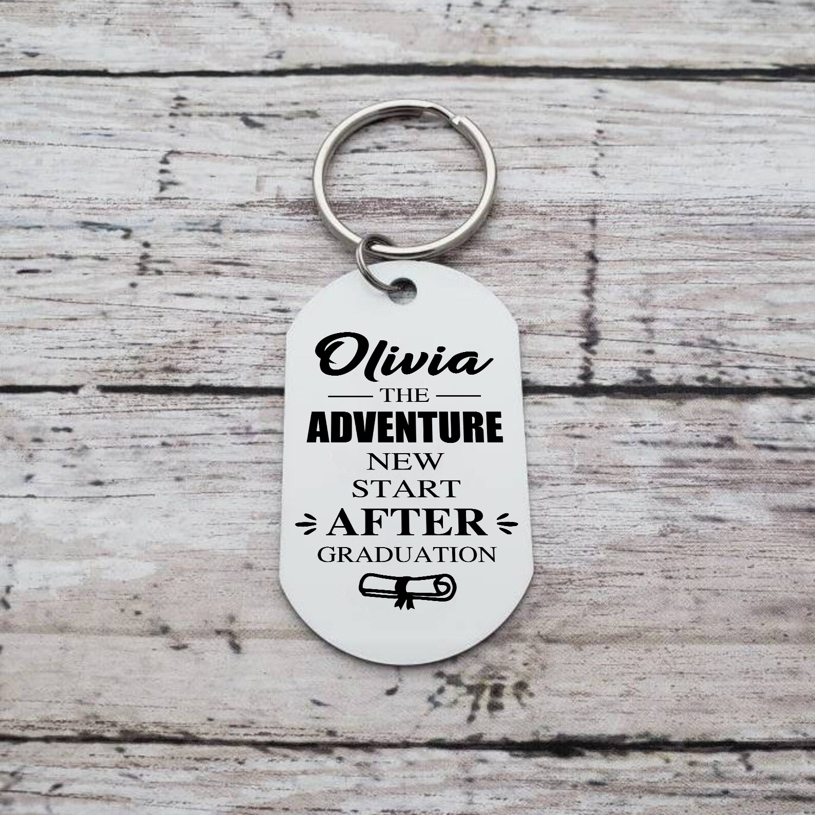 🔑🎓 Graduation is a key milestone in life, unlocking new opportunities and adventures! 🌟 Celebrate this achievement with a personalized stainless steel keychain engraved with their name. 🎁 A small token that carries great significance, just like the memories and friendships made along the way. 🎉 Order now and gift them a keepsake that will remind them of their journey every time they reach for their keys!