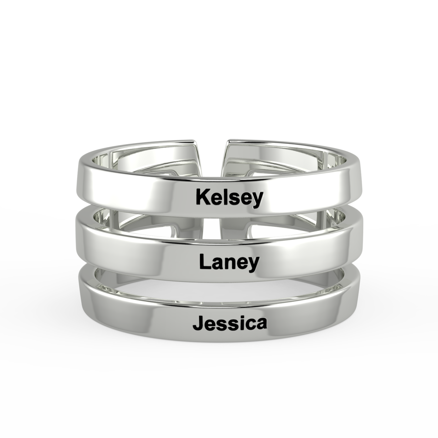 This ring has simple and exquisite design with fine lines, it will make the finger look more slender after wearing. The ring supports customization of 1-3 names, which can be family members, friends, brothers or sisters' names. Wear their names on finger and seeing their names, just like they are with you even if they are not around you. Give them the ring, and they also will feel your love for them all the time. Take this beautiful ring home quickly!