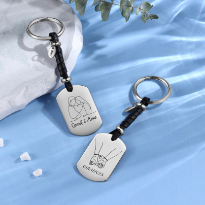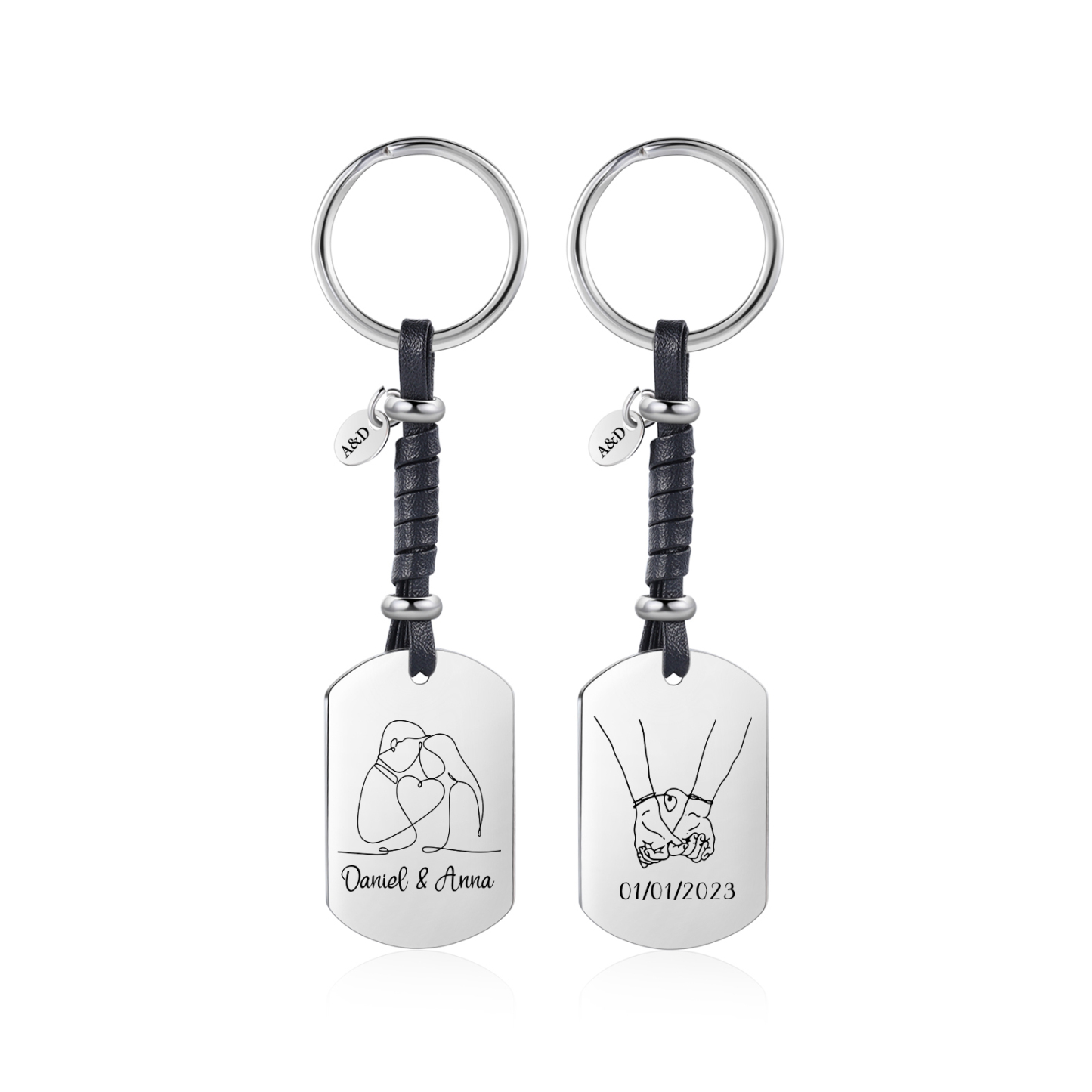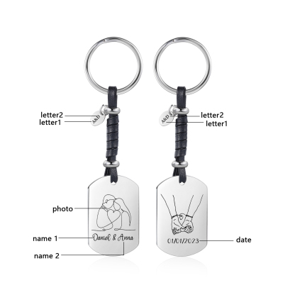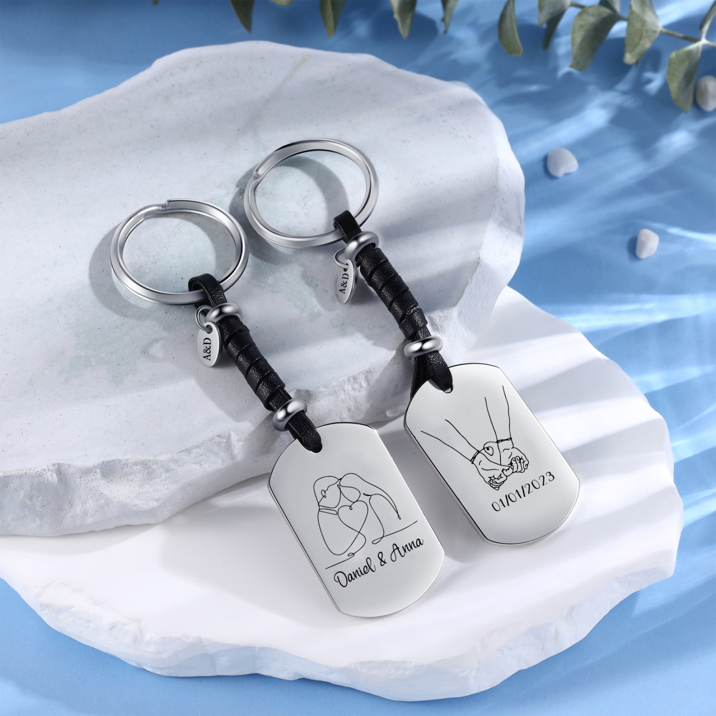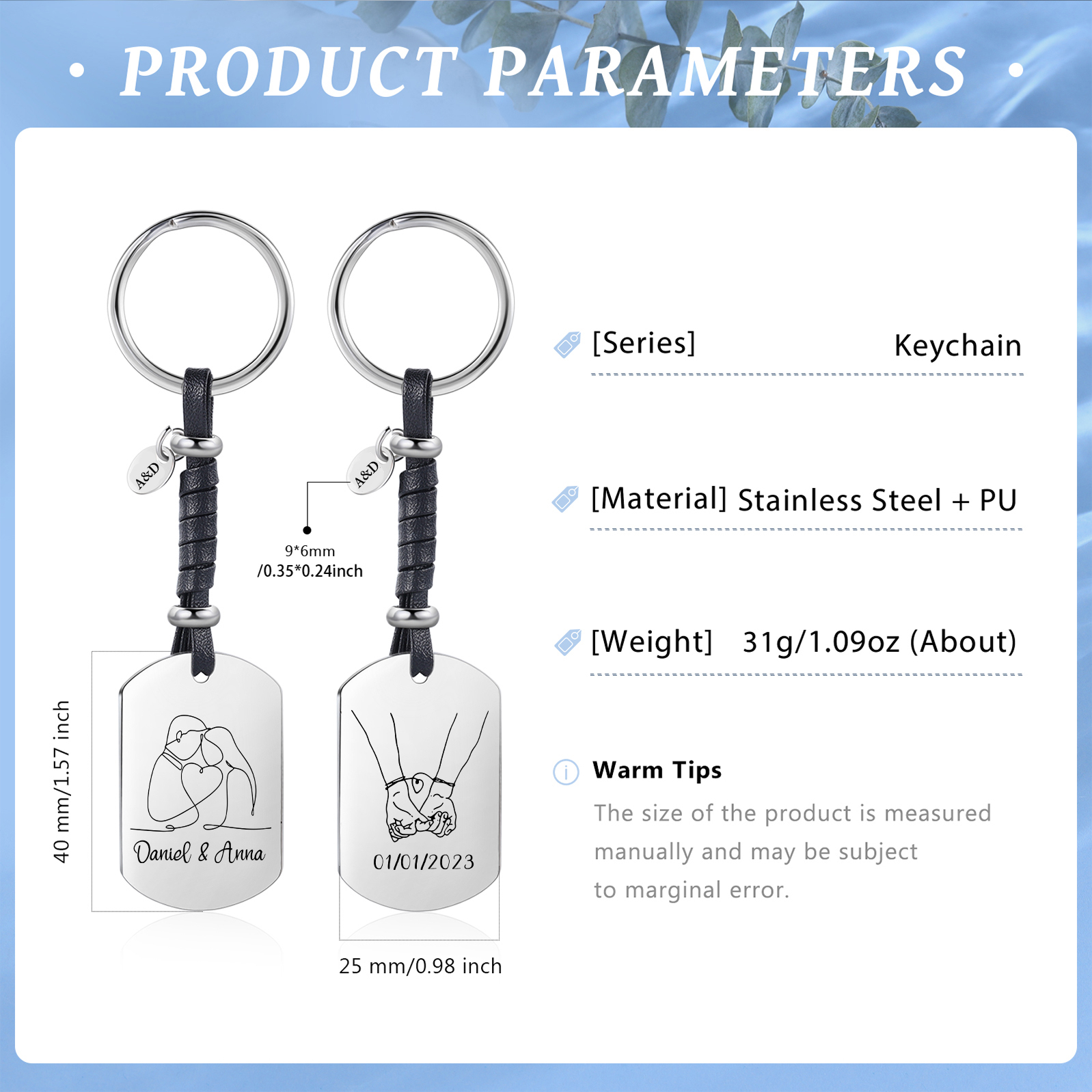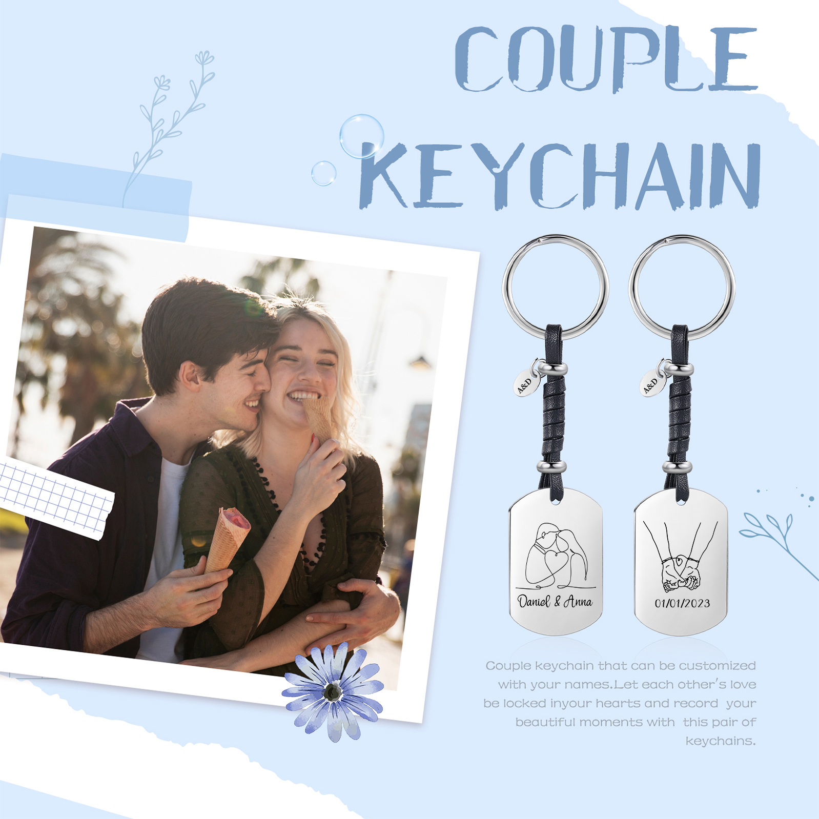 Personalized Names PU Couple Keychain Engrave Letter Matching Couple Gifts, Special Gift For Him/Her
