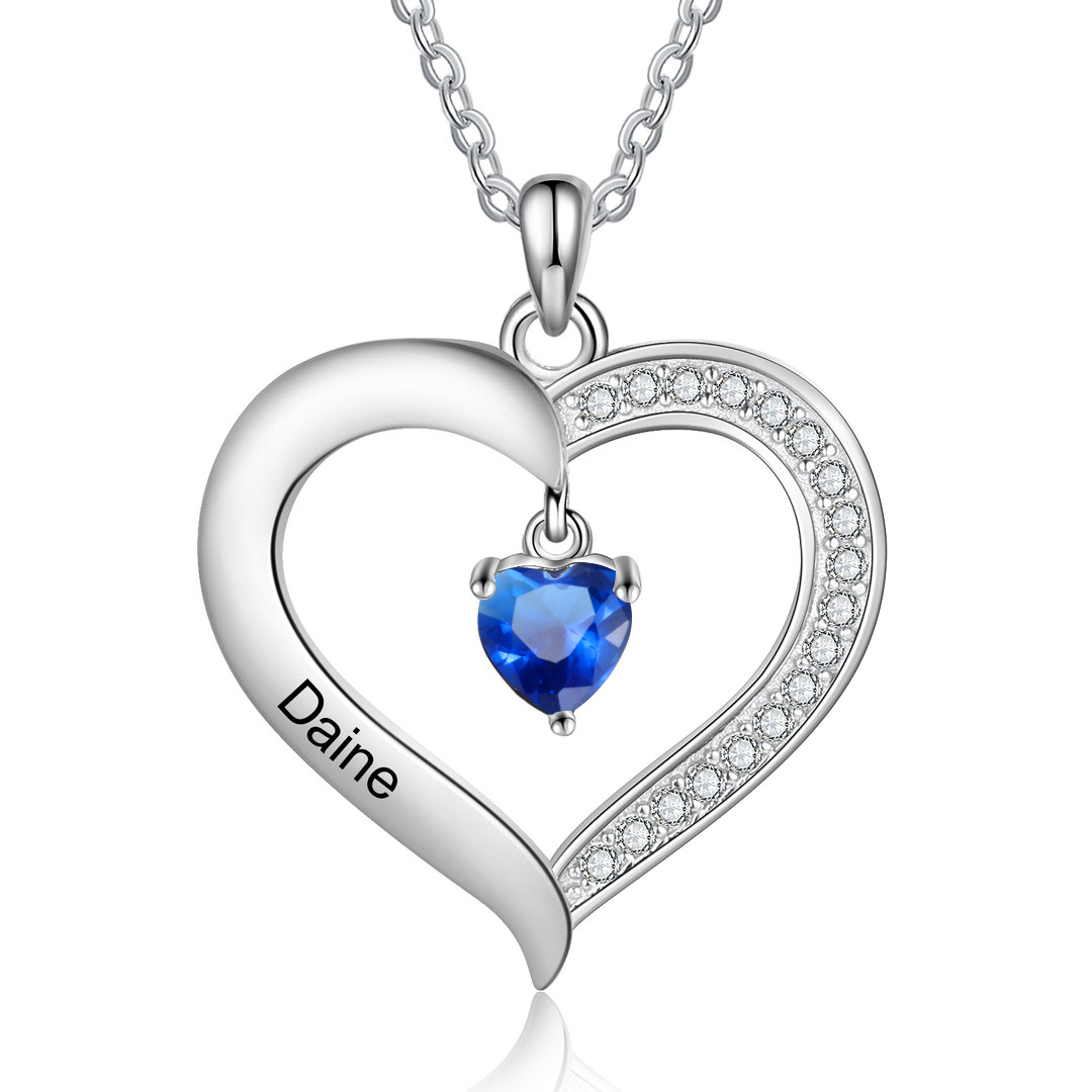 September Birthday Gift Personalized Necklace With 1 Heart Birthstone Engraved Names Heart Necklace Gift For Women