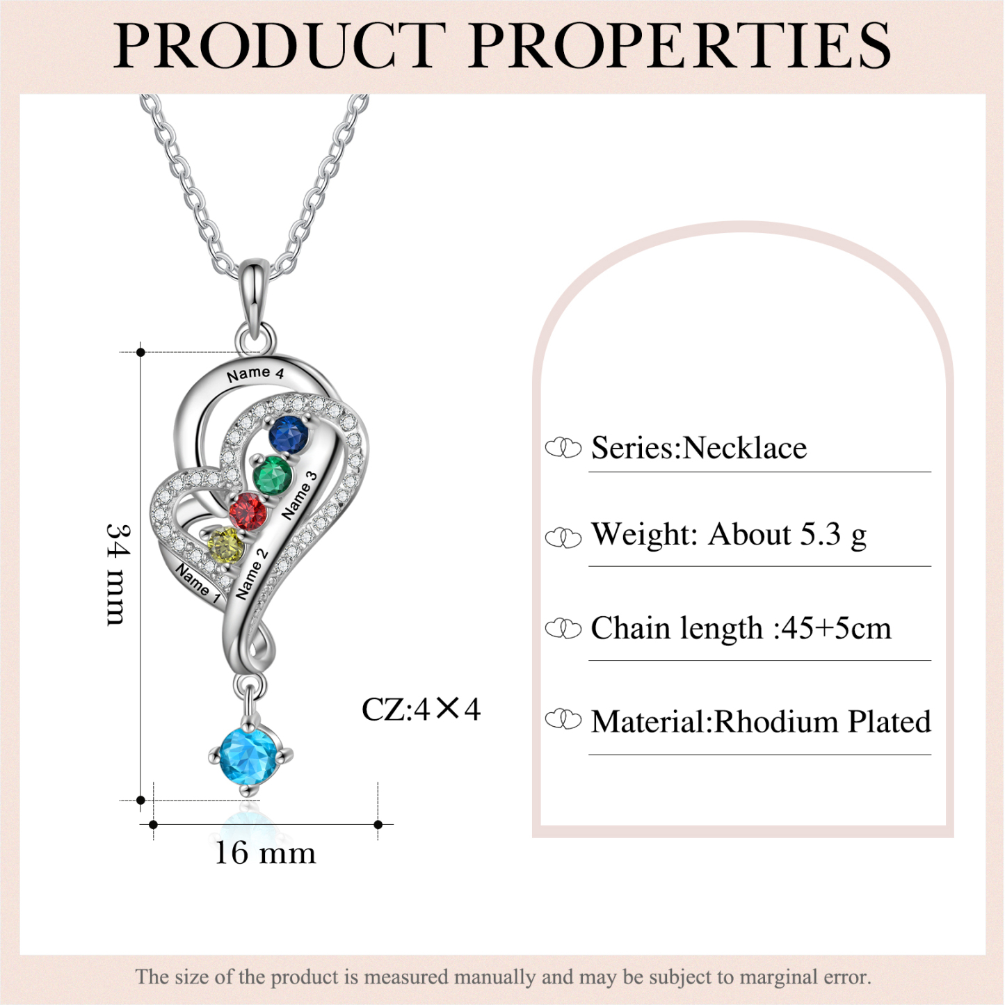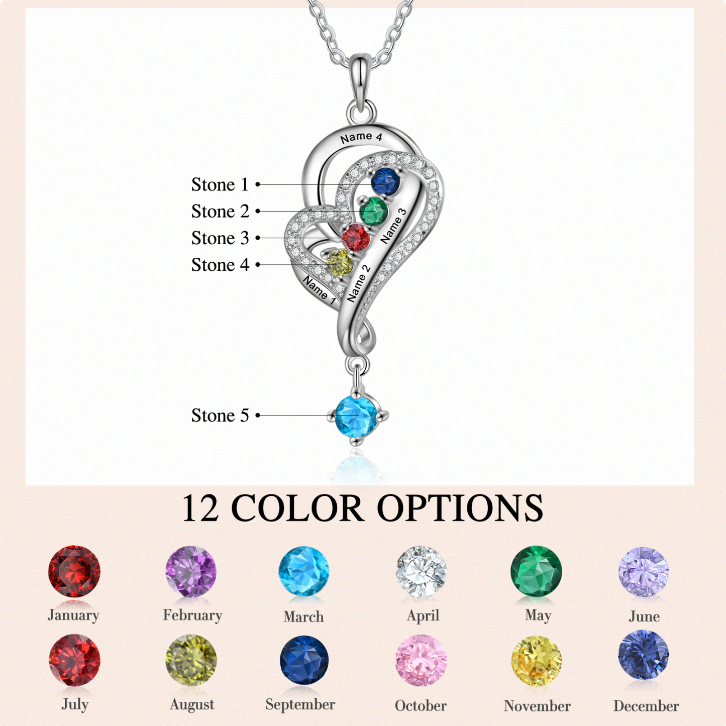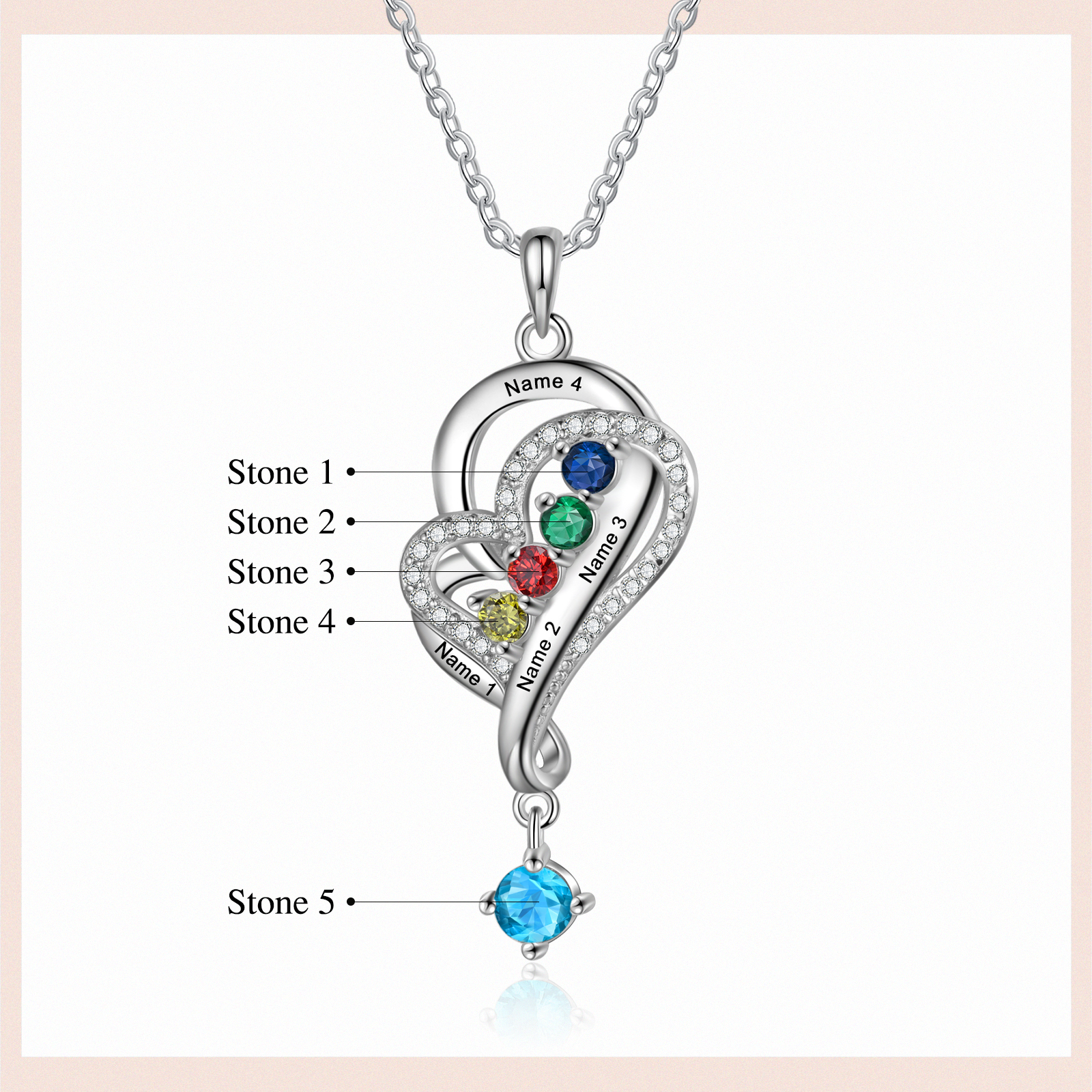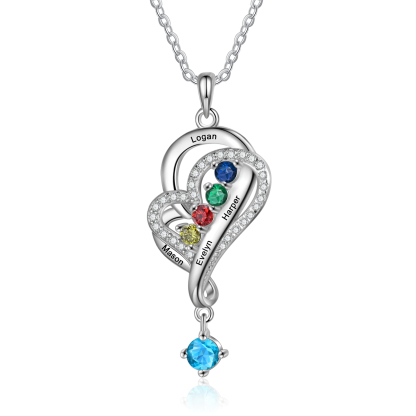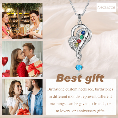 Personalized Overlap Heart Birthstone Necklace Custom 4 Names Necklace Gifts for Her