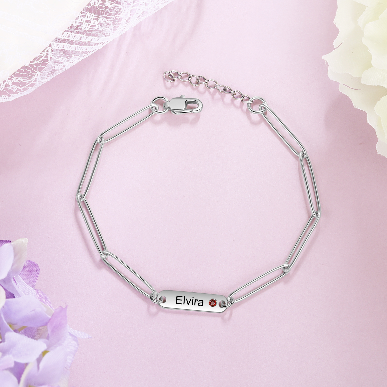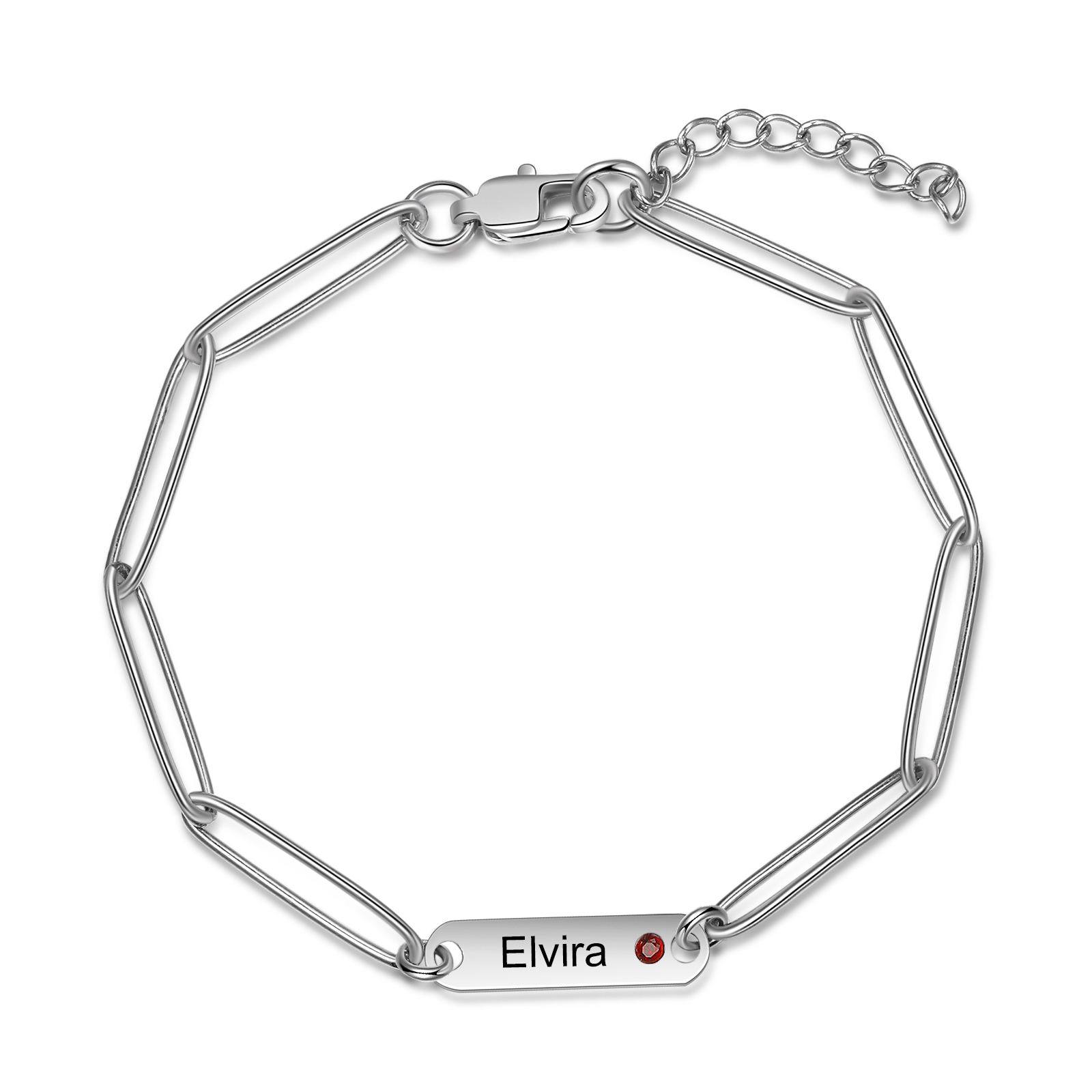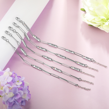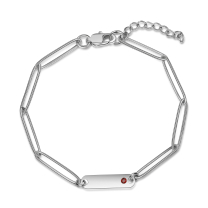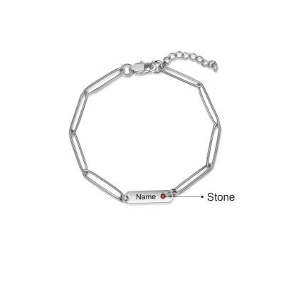 Personalized Paperclip Chain Bracelet With Birthstone Engraved 1 Name Necklace For Women