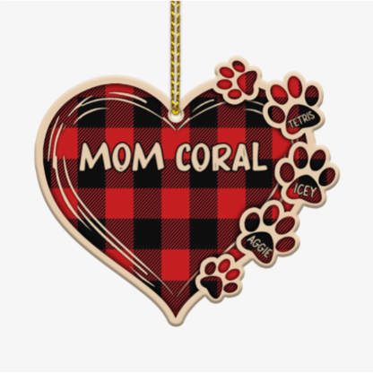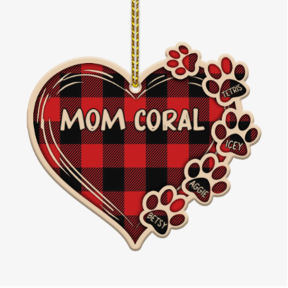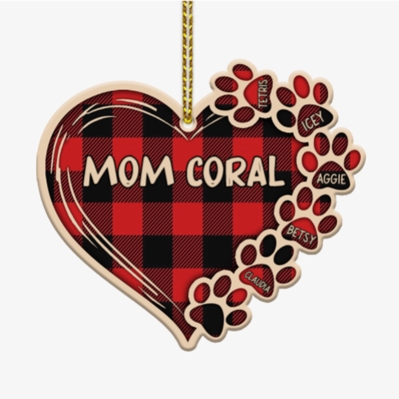 Personalized Pet Gift Custom 3 Names Wooden Paw Ornament Christmas Gift For Family