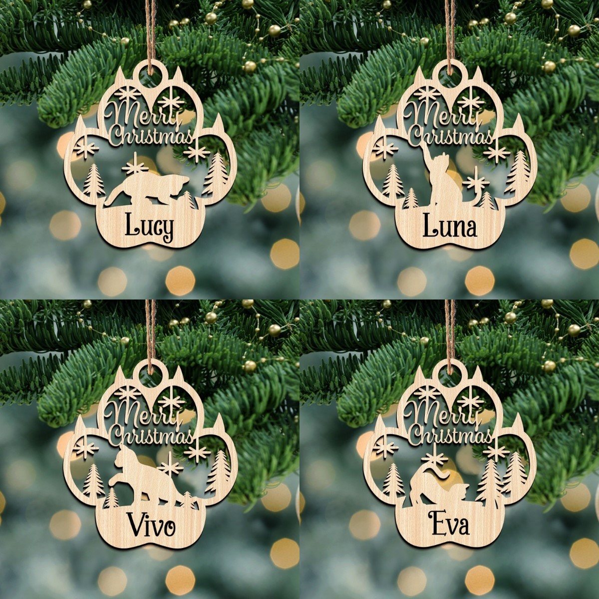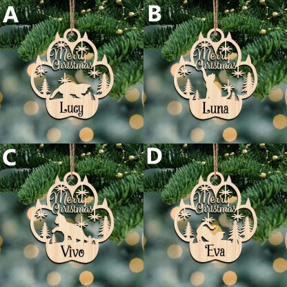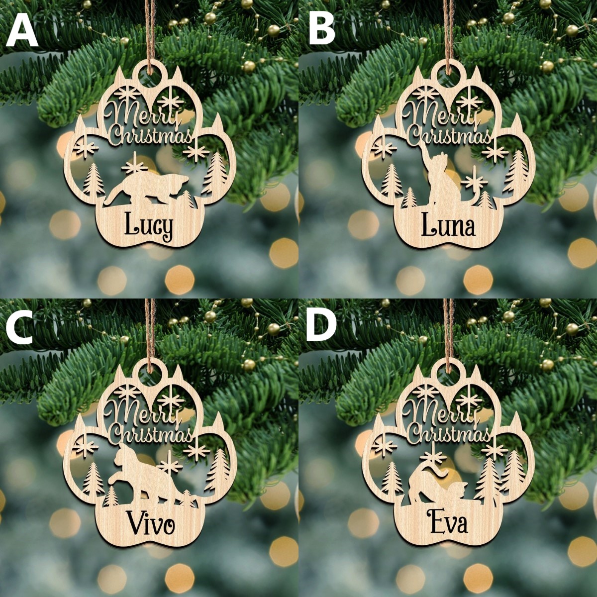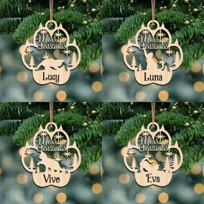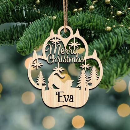 Personalized Pet Gift Custom Wooden Cat Paw Ornament Christmas Gift For Family