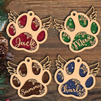 Personalized Pet Gift Custom Wooden Paw Ornament Christmas Gift For Family