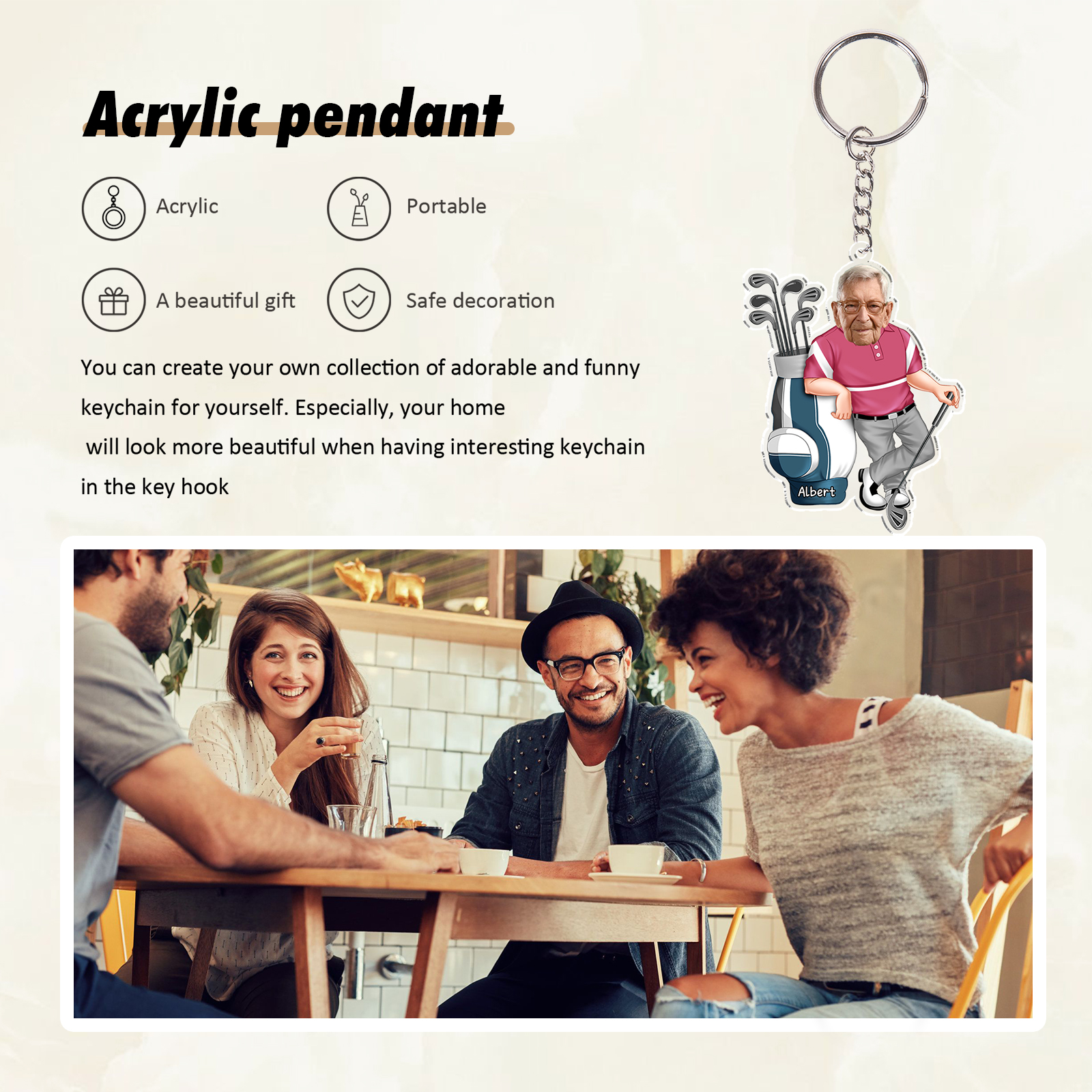 Personalized Photo And Name Acrylic Fishing/Golf Keychain, Gift For Dad/Grandpa