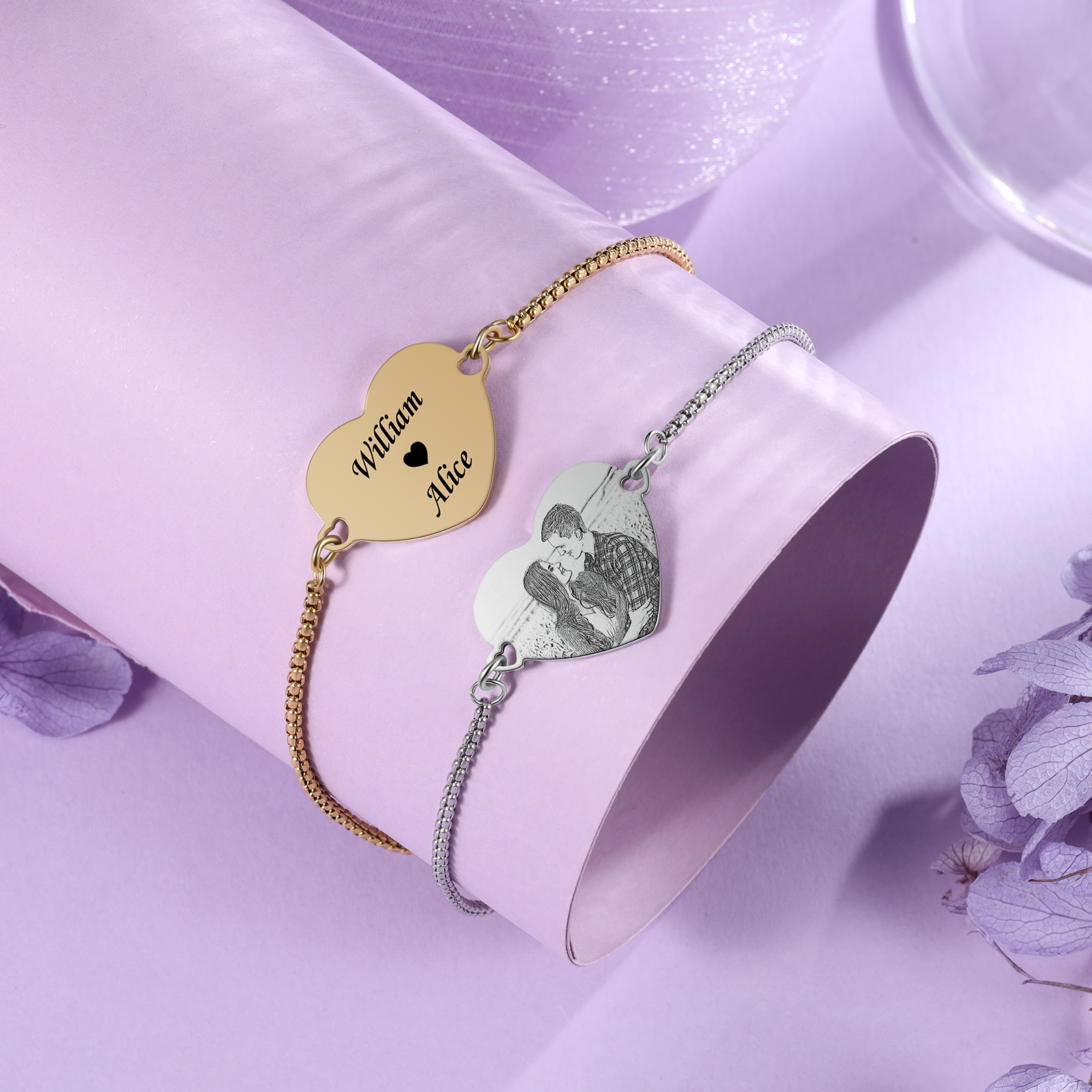Personalized Photo Bracelets Custom Names Couple Bracelets