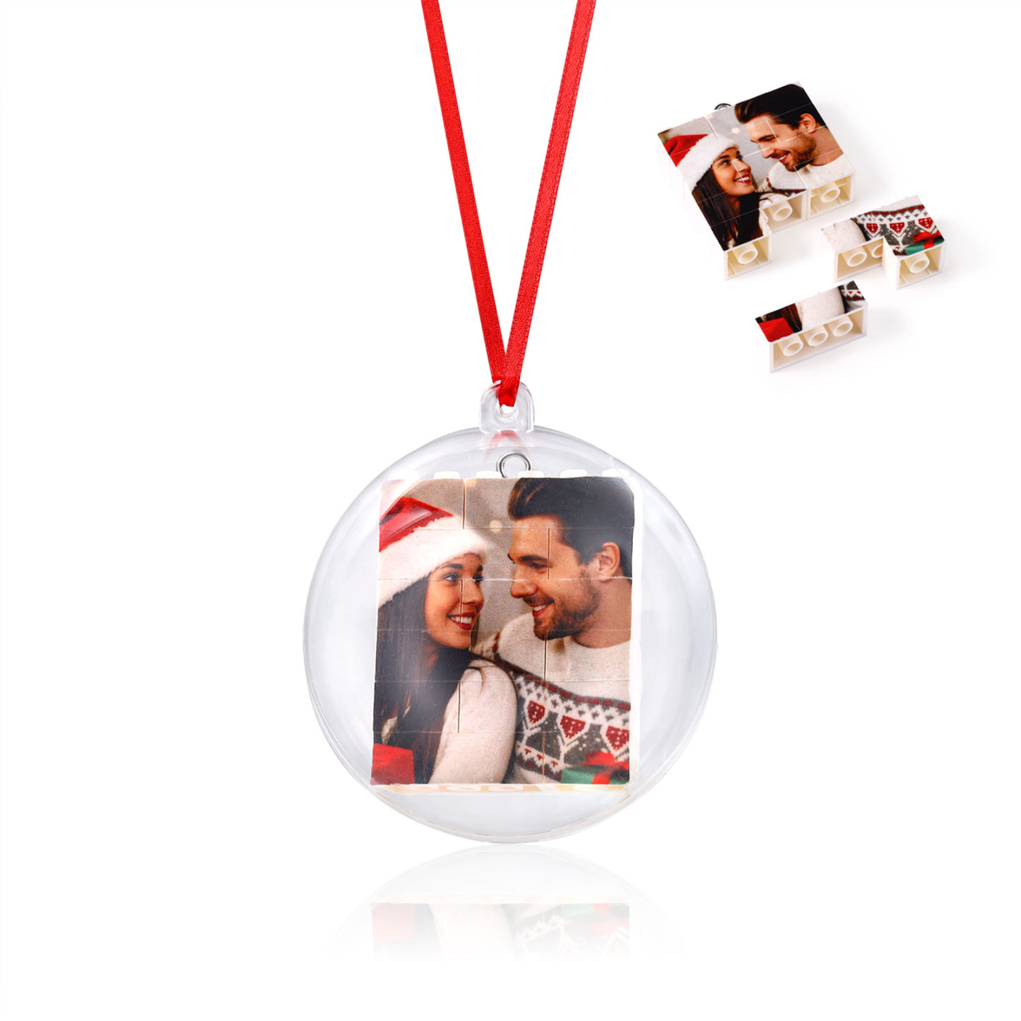 Give a heartwarming yet practical gift with this photo-personalized Christmas tree ornament – perfect for partners, parents, grandparents, friends, or teachers. Your favorite photo is printed on mini blocks and displayed in a clear ball with a red ribbon – decorative and full of meaning.