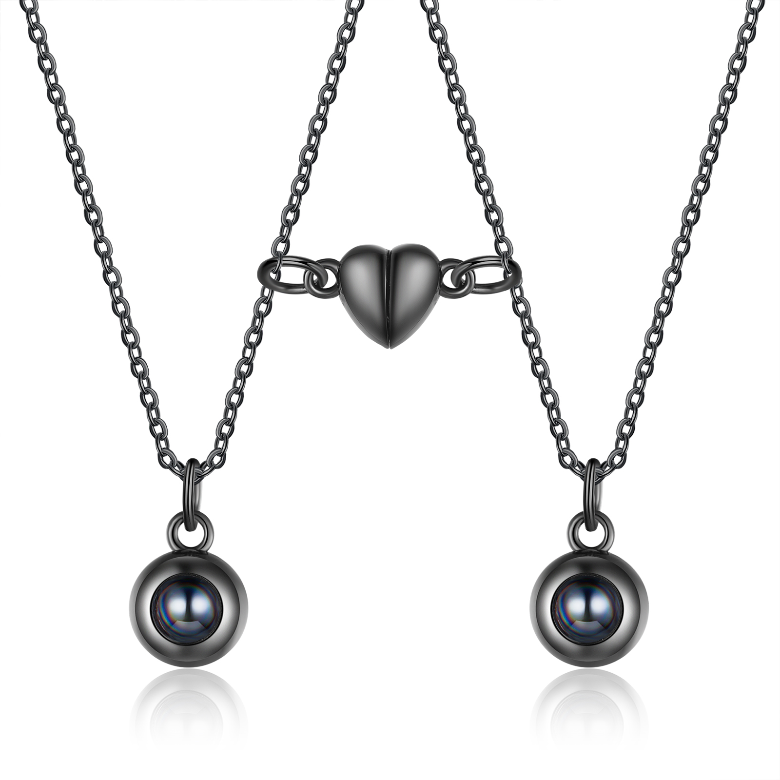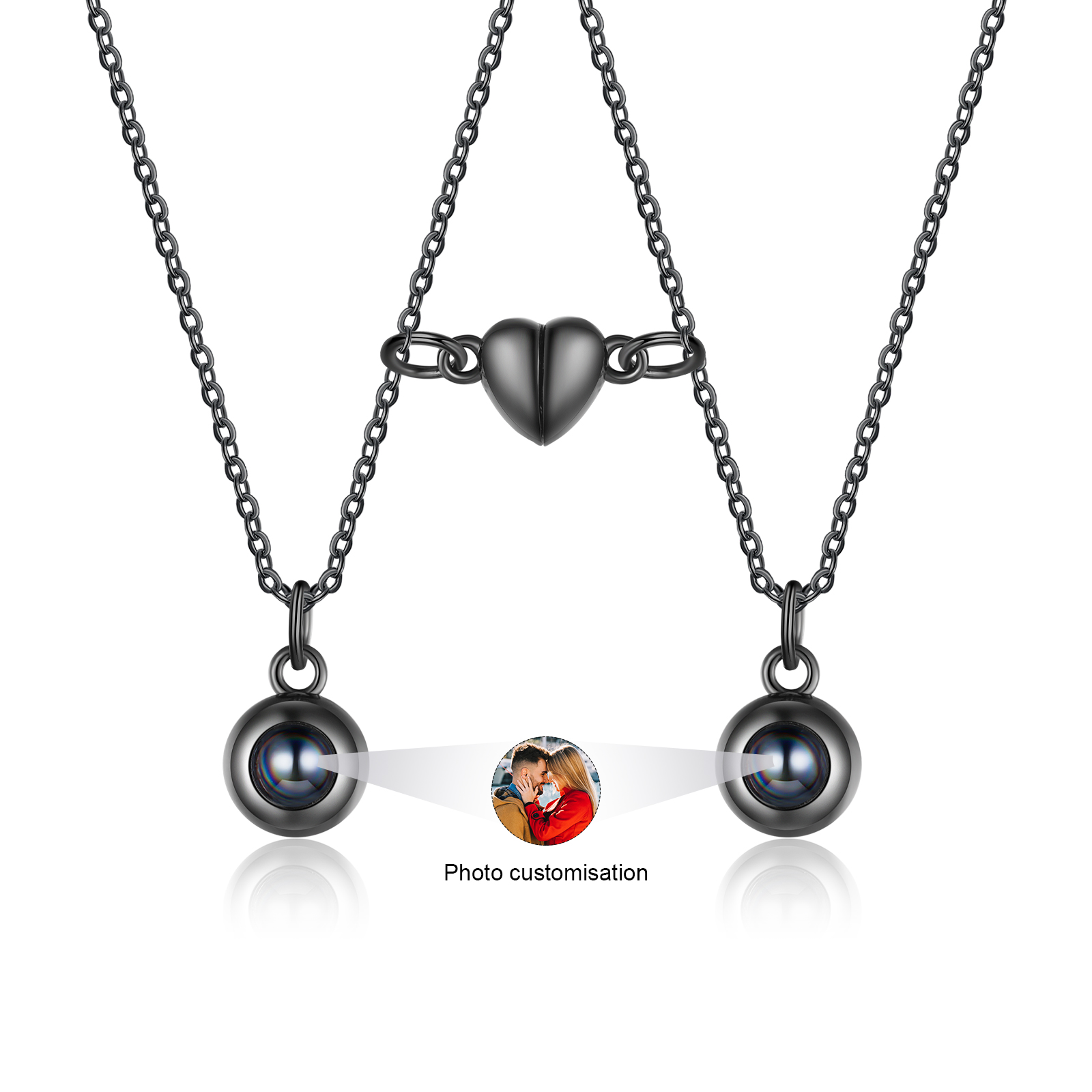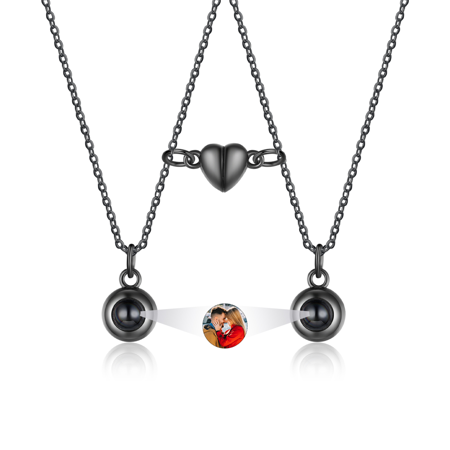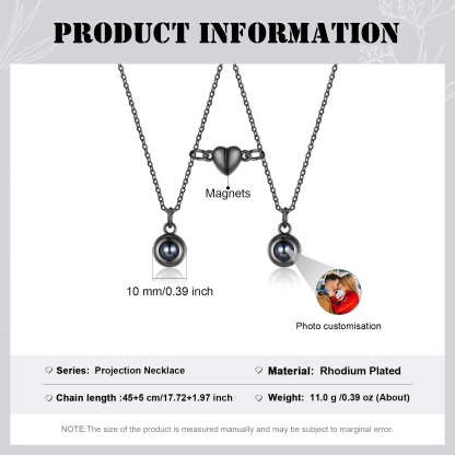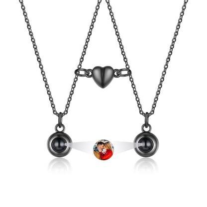 Personalized Photo Couple Projection Heart Magnet Couple Necklace Gift For Him/Her