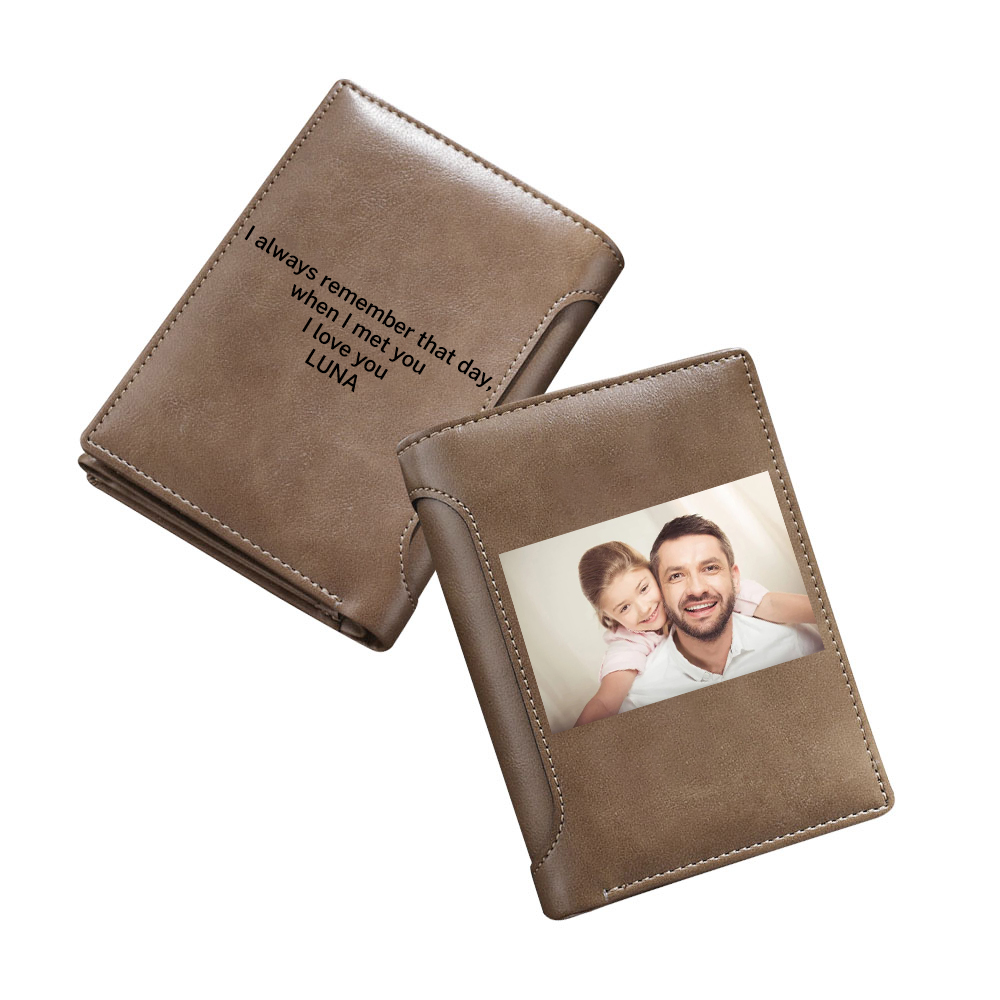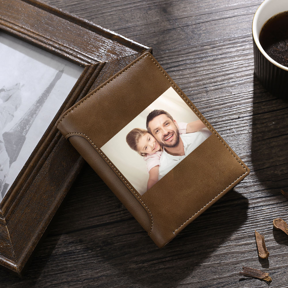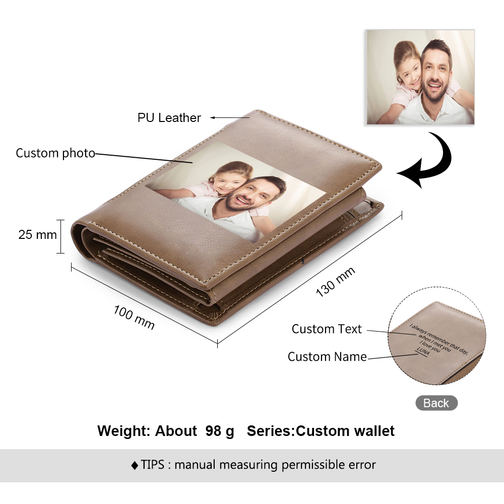 Personalized Photo Customized Leather Men's Wallet Customized Name and Text as Father's Day Gift for Dad