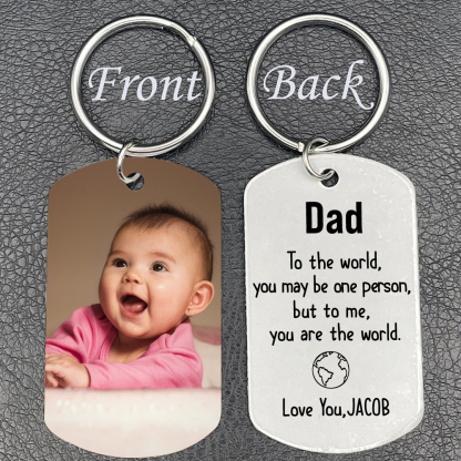 Personalized Photo Dad Keychain for Fathers Day, To The World You maybe one person But To me You Are The World