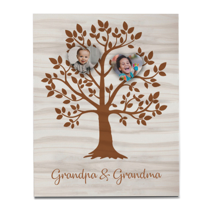 Personalized Photo Family Tree Wood Signs Engrave 2 Photos Frame