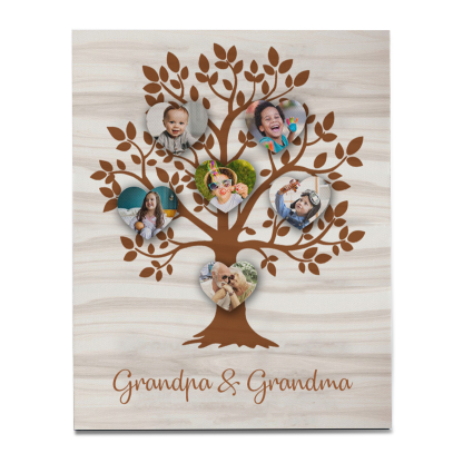 Personalized Photo Family Tree Wood Signs Engrave 6 Photos Frame