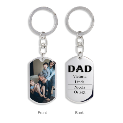 Personalized Photo Keychain Dad Keyring Engrave 4 Names Father's Day Gifts