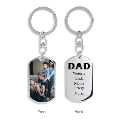 Personalized Photo Keychain Dad Keyring Engrave 5 Names Father's Day Gifts