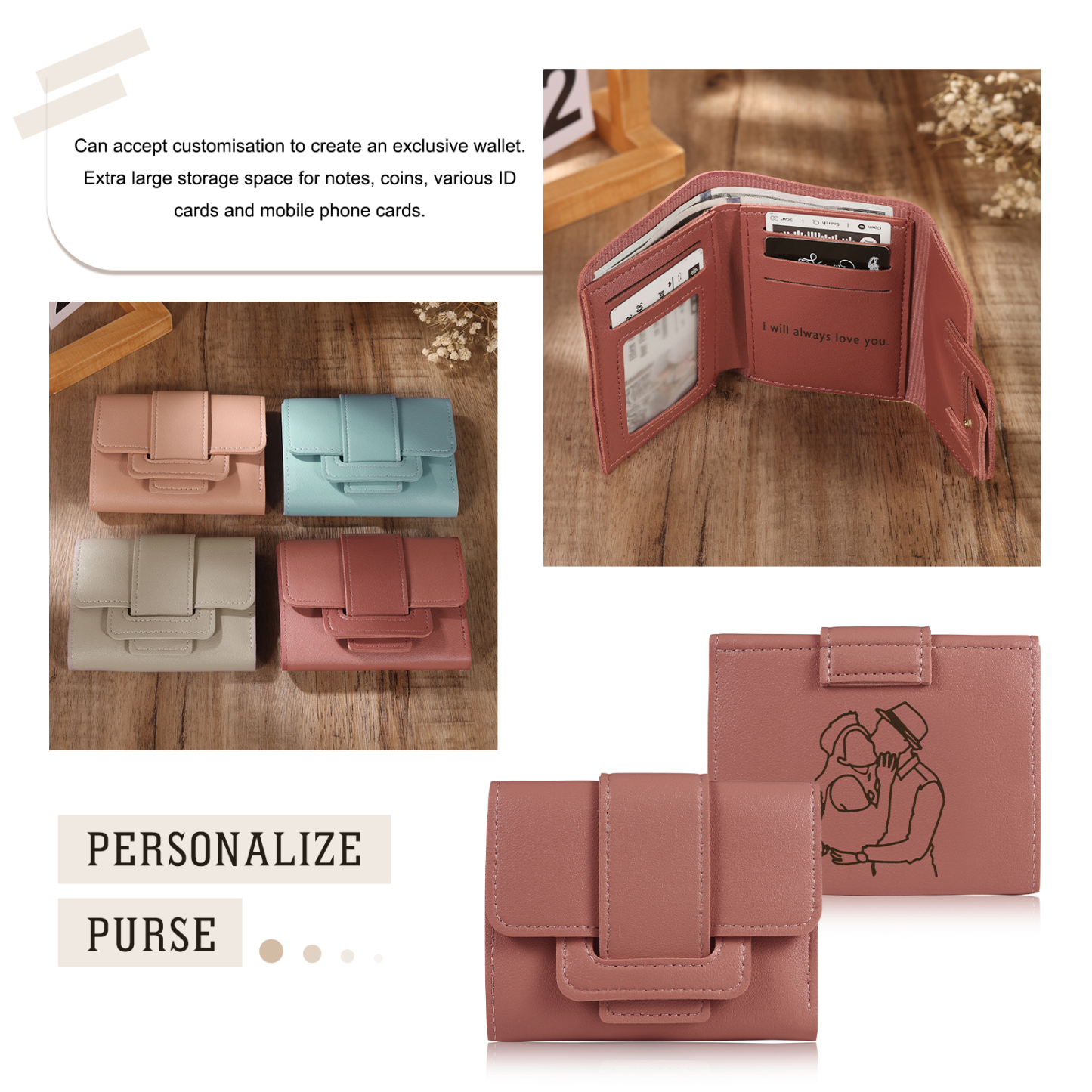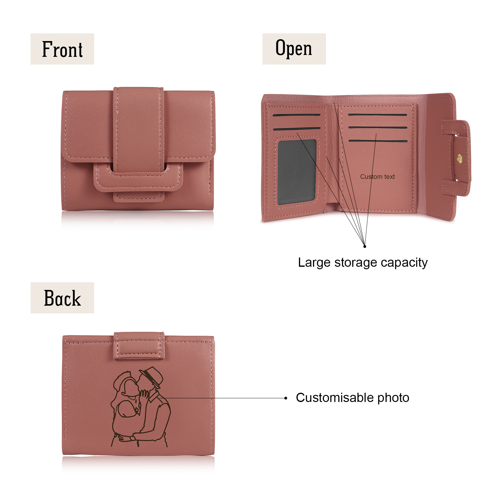 Personalized Photo Leather Folding Wallet Engraved Text Wallet Gifts for Her