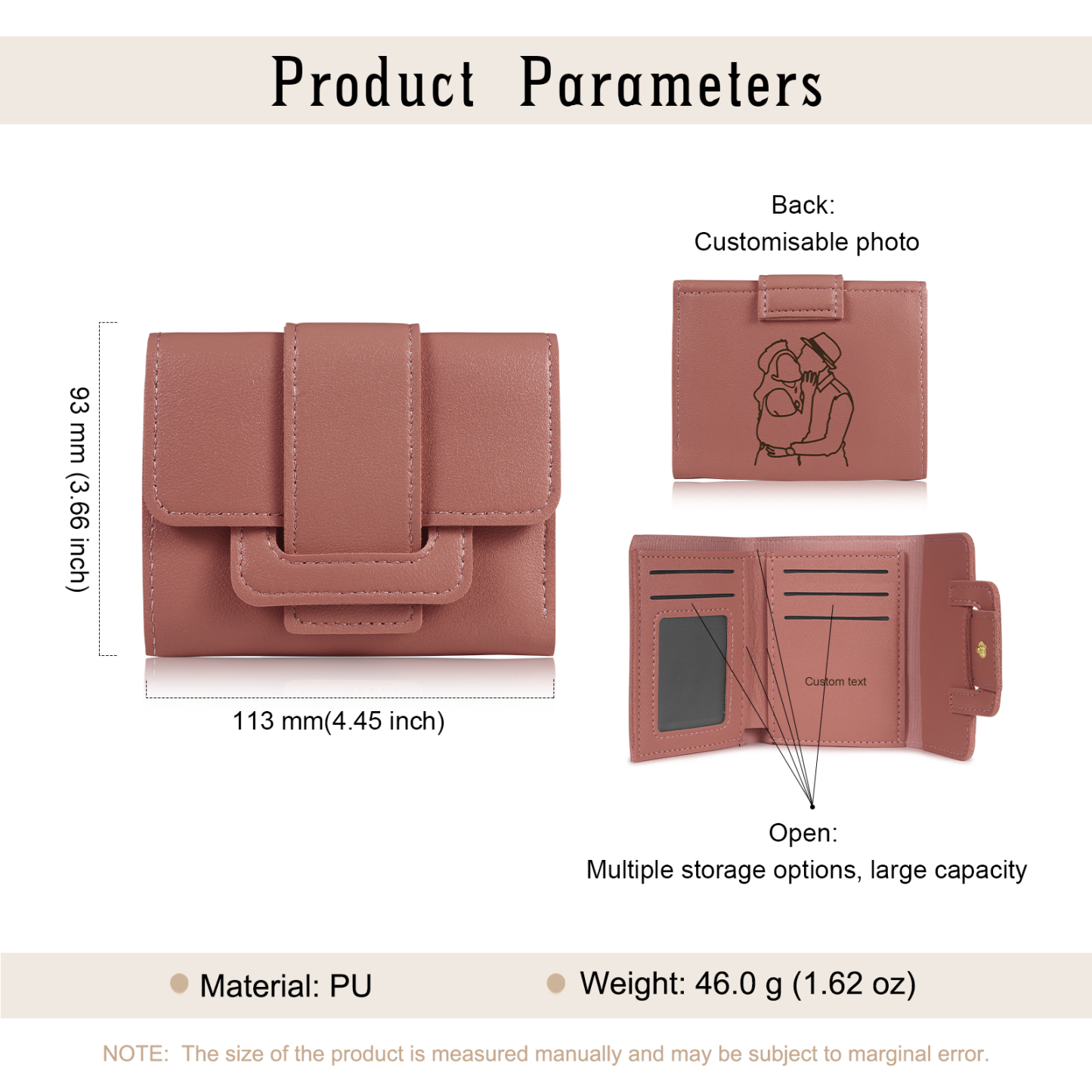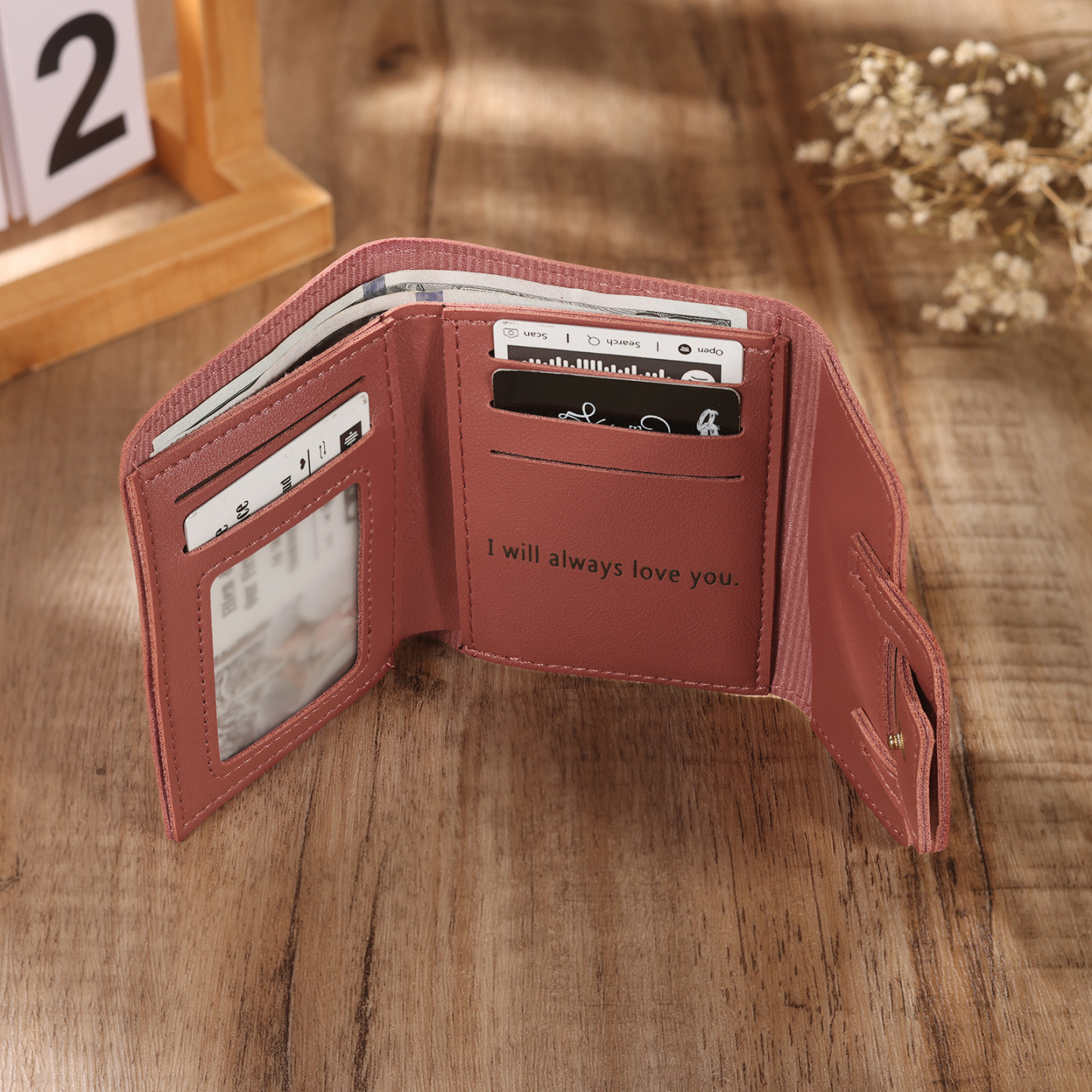 - type the date you want to engraved on the wallet (up to 25 characters, please notice your spelling and formatting).In order to keep love in your wallet,our Photo Wallet will capture a moment that is gone forever. The photo will never fall off!