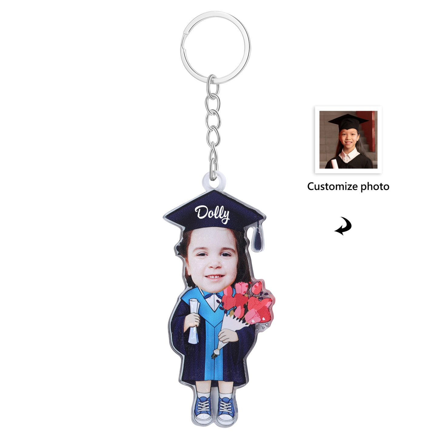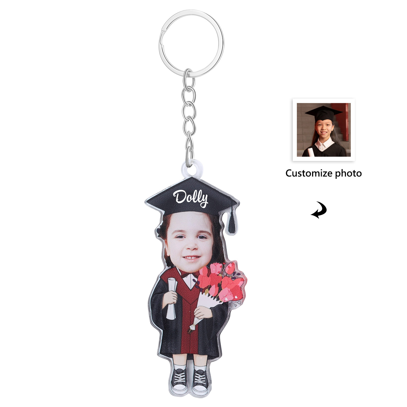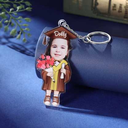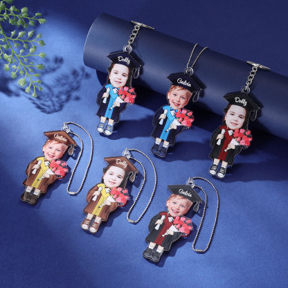 Personalized Photo & Name Exquisite Stainless Steel Graduation Keychain Gift For Her/Him