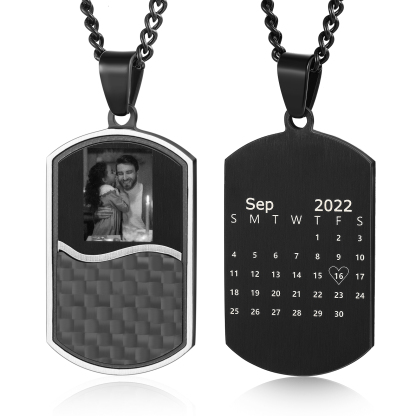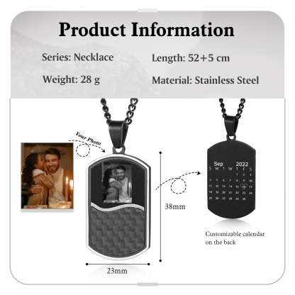 Personalized Photo Necklace with Calendar Dog Tag Necklace