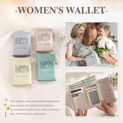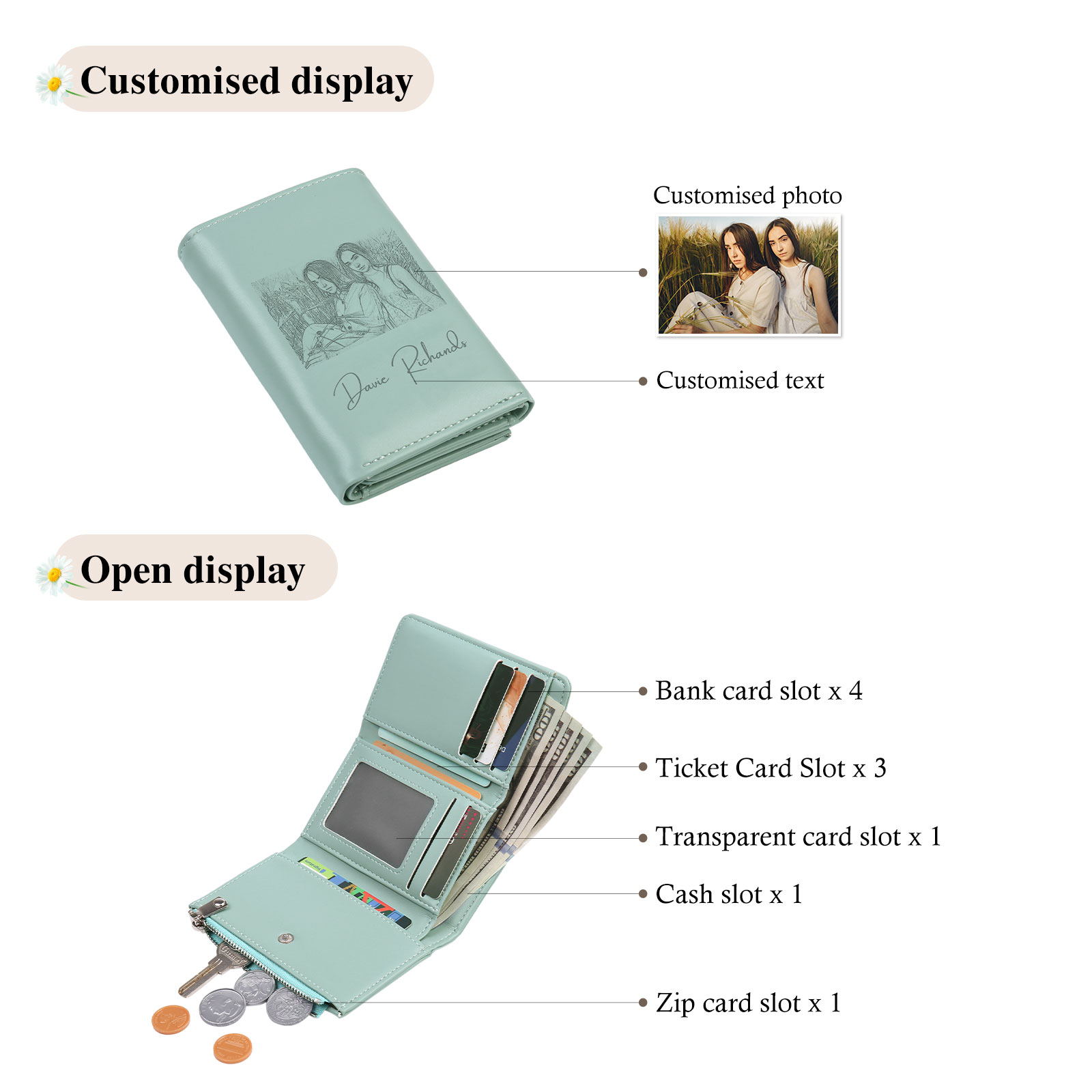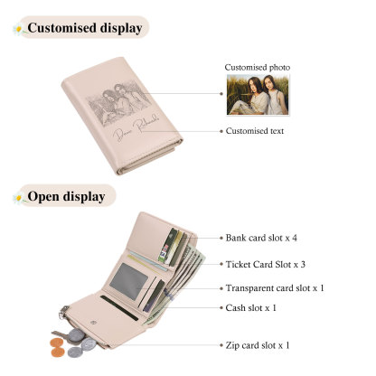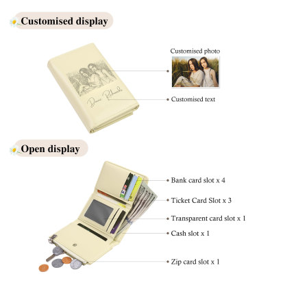 😍The customized women's wallets we provide can not only accommodate your daily needs of credit cards, cash and small items, but also engrave your precious memories in them. The wallet supports customizing a photo and text.