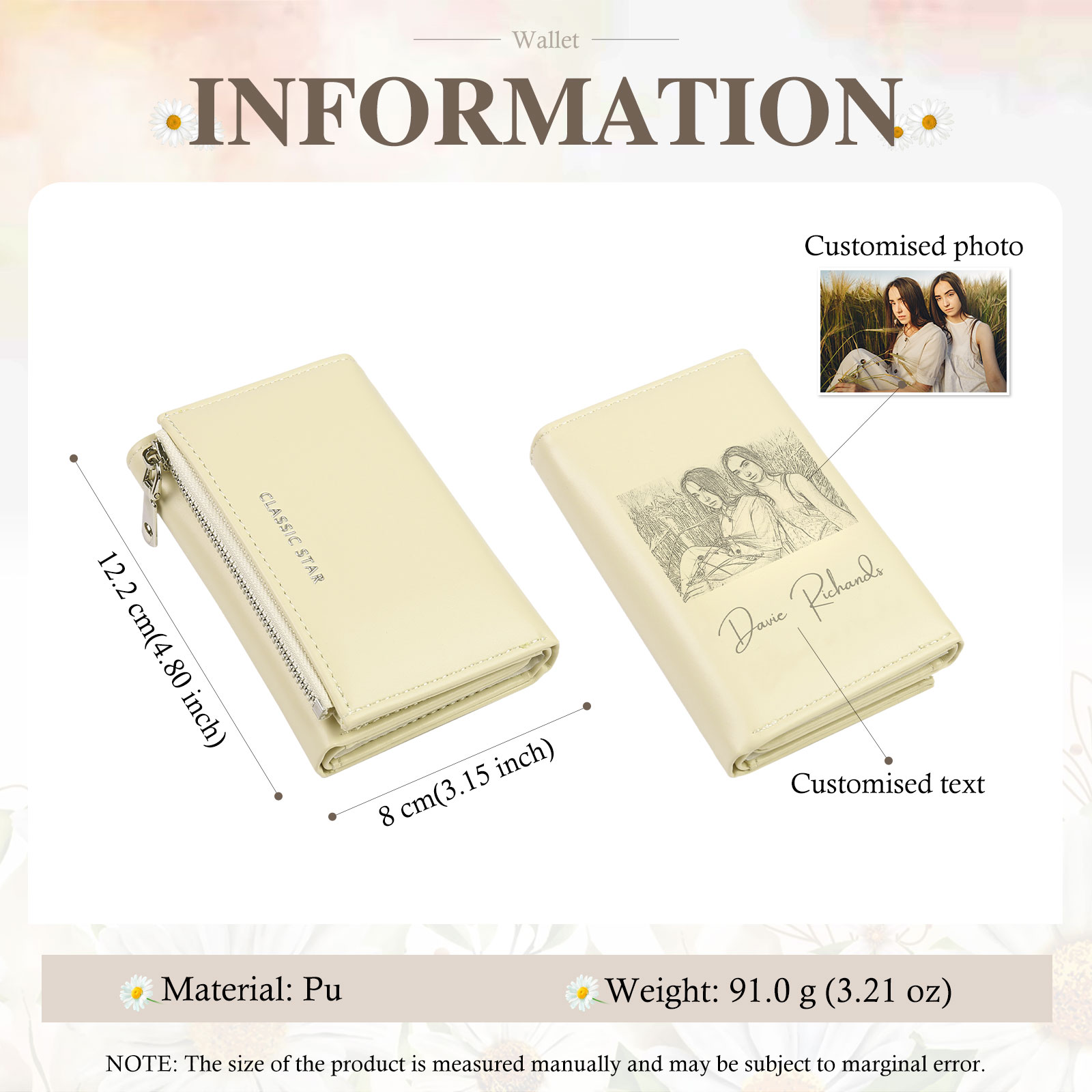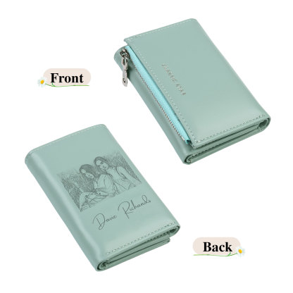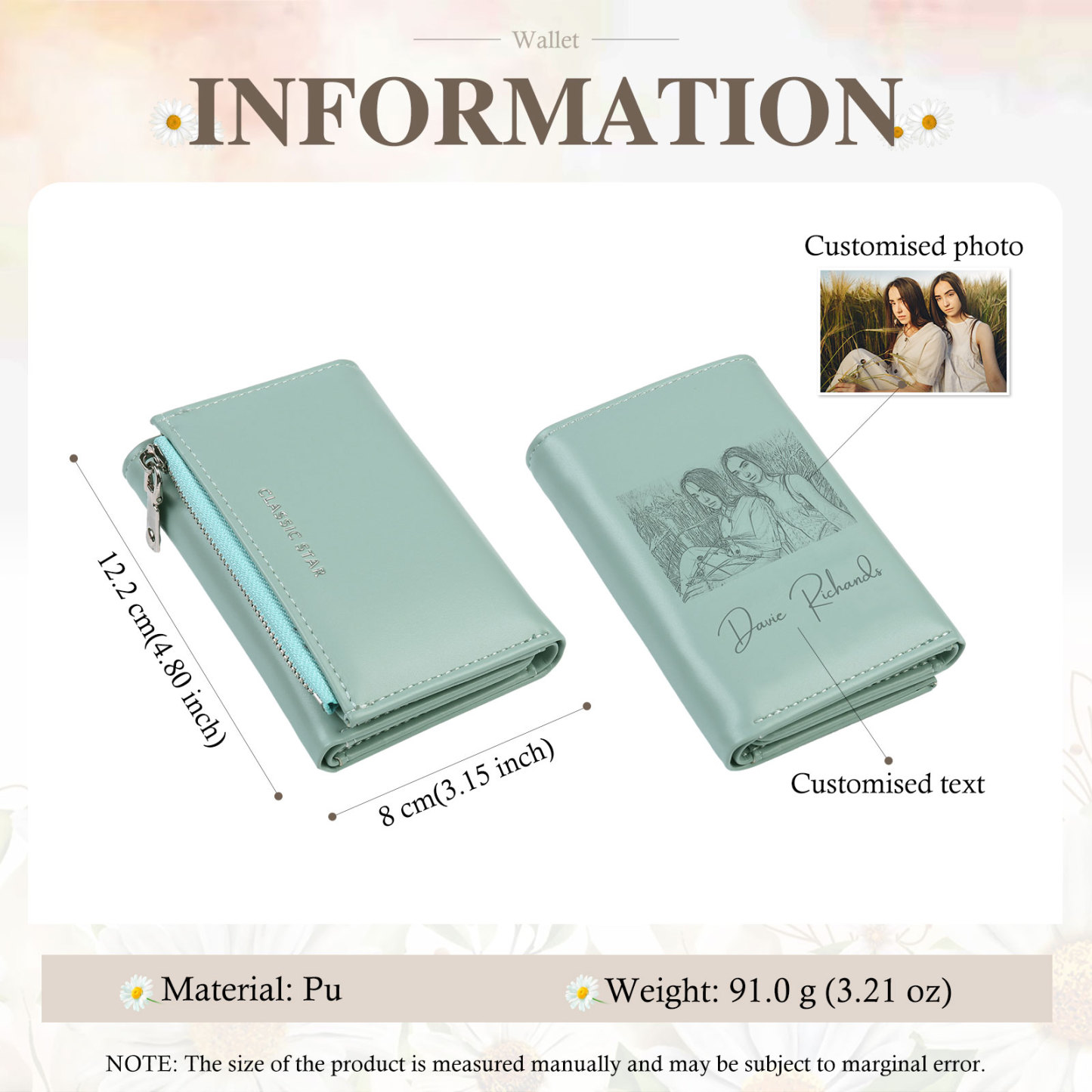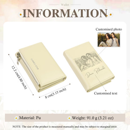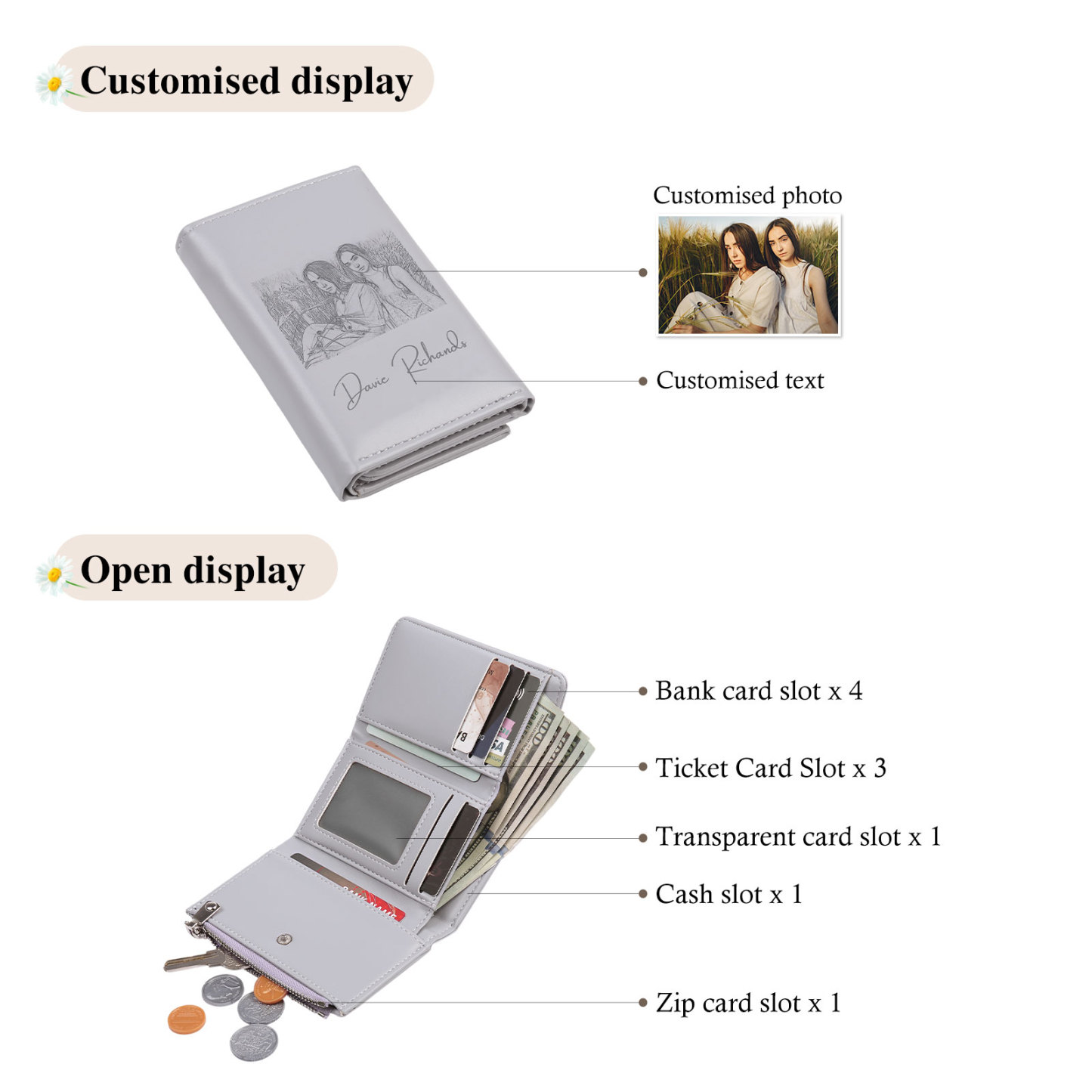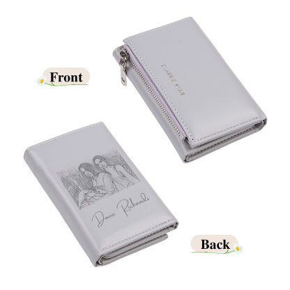 Personalized Photo Quality Leather Folding Zip Wallet Custom Text Wallet Gift for Her