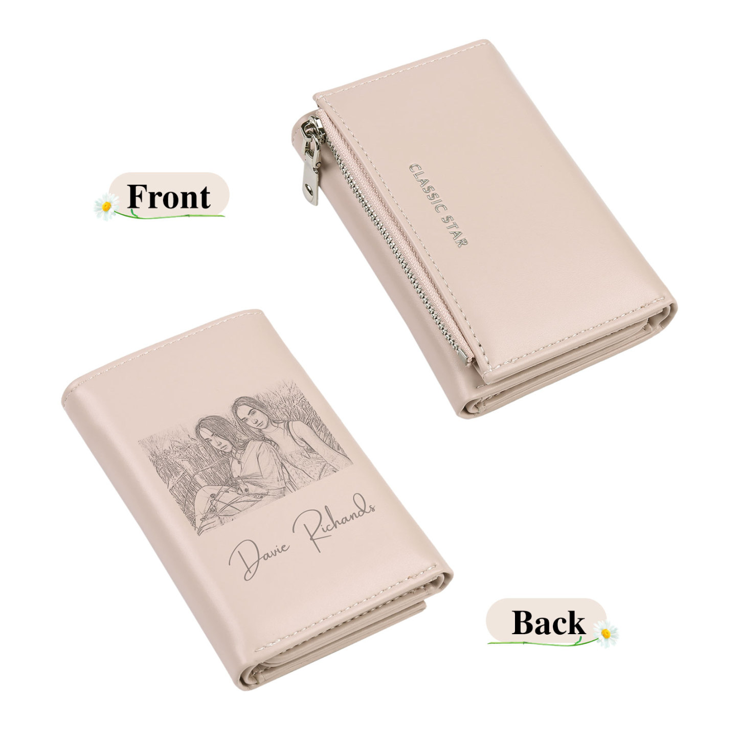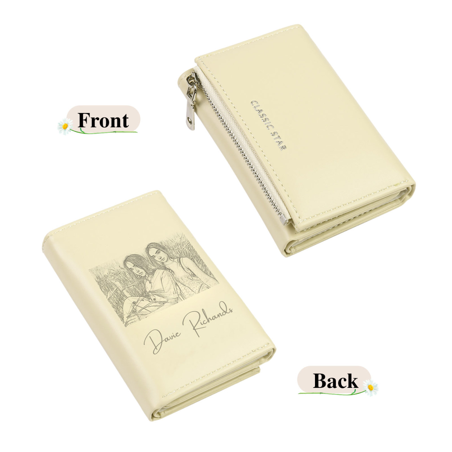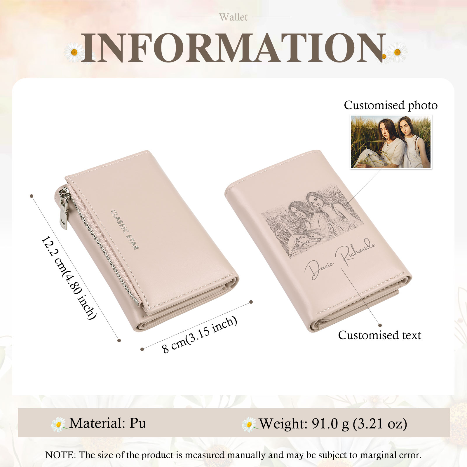 Personalized Photo Quality Leather Folding Zip Wallet Custom Text Wallet Gift for Her
