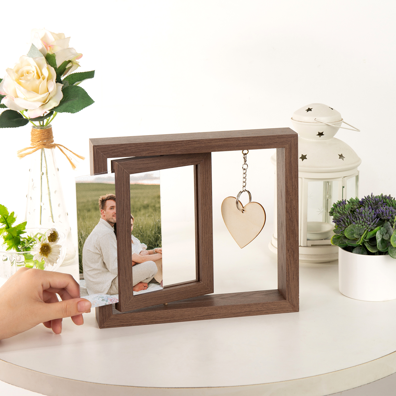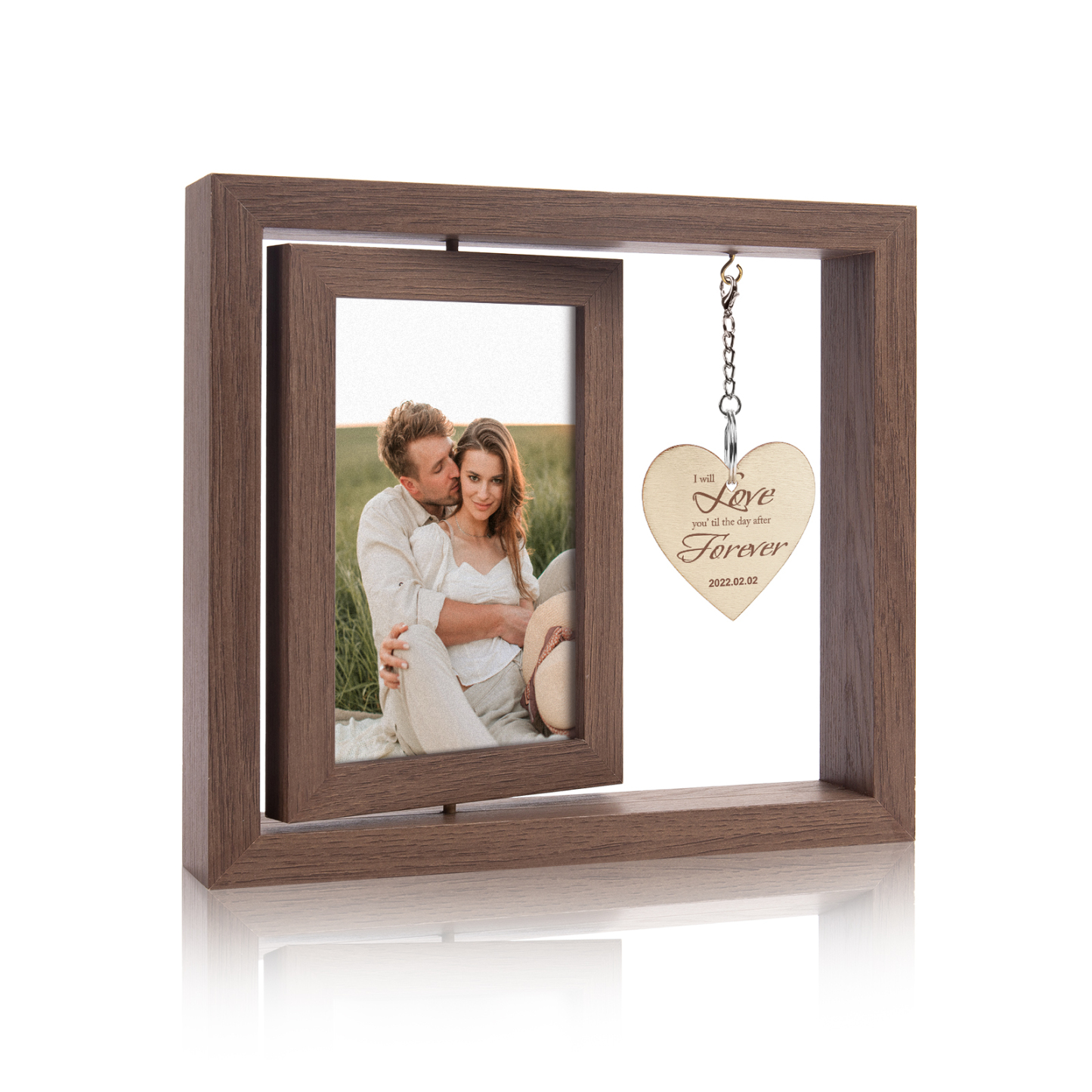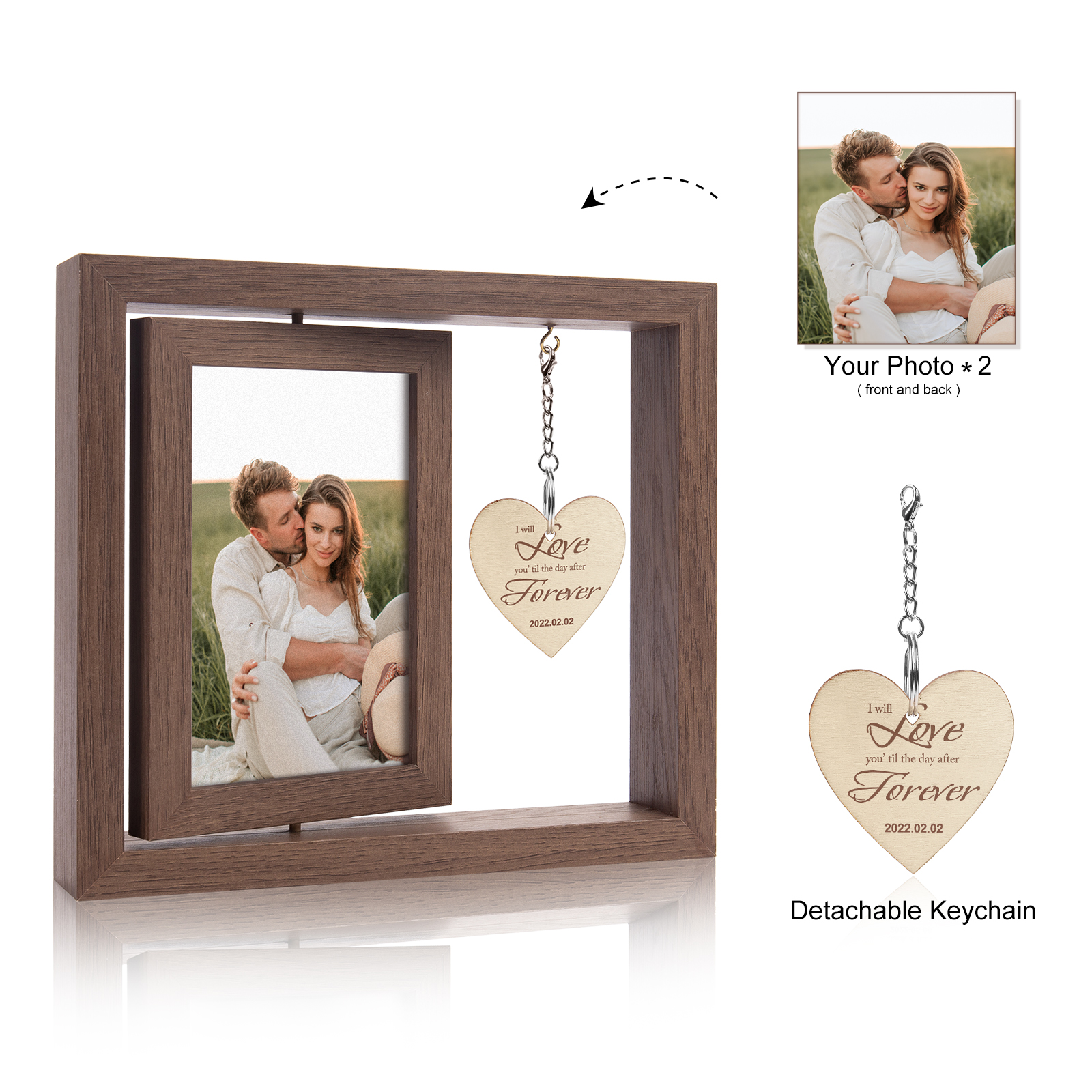 Personalized Photo Rotatable Wooden Frame Custom Date Gift For Couple