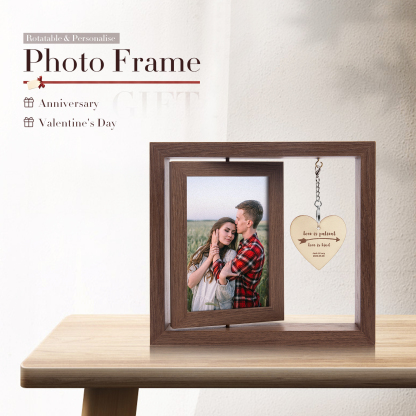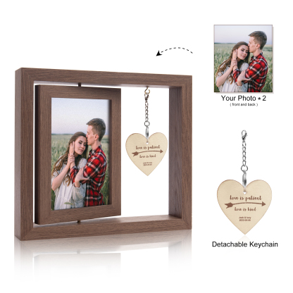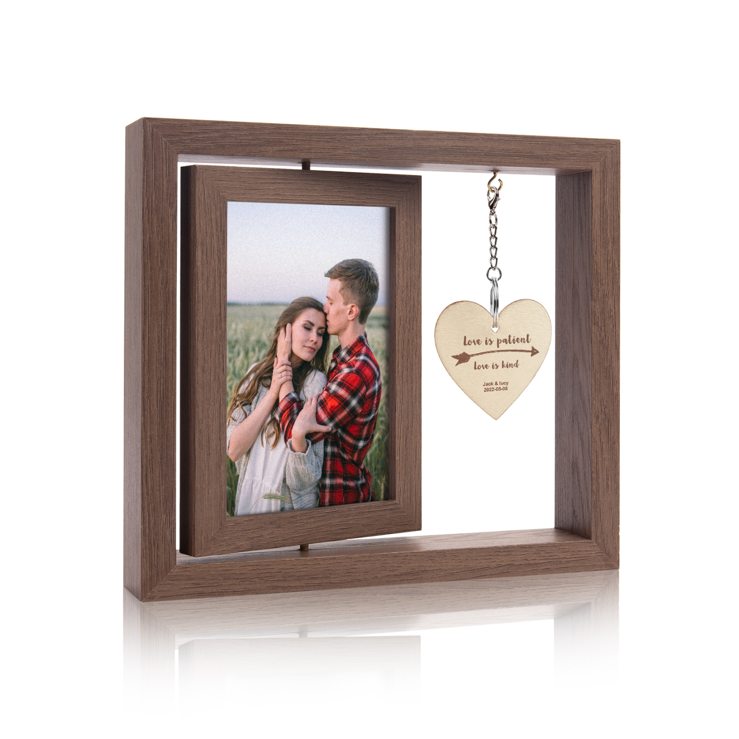 Personalized Photo Rotatable Wooden Frame Custom Name And Date Gift For Couple