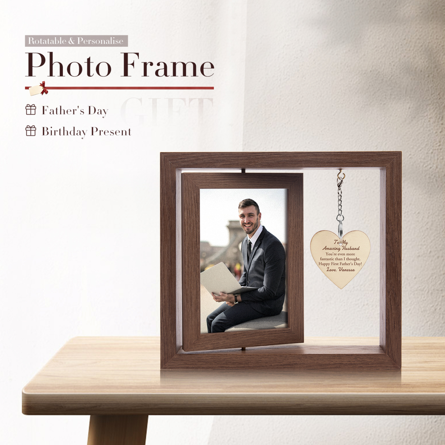 Personalized Photo Rotatable Wooden Frame Custom Name Gift For Husband