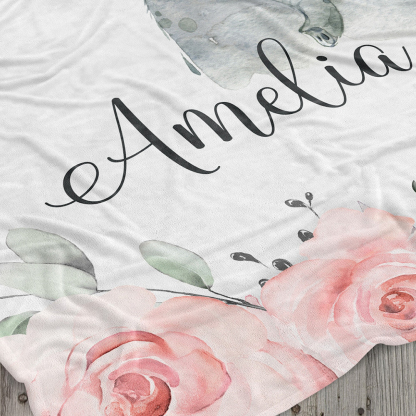 Personalized Pink Floral Elephant Blanket Custom Name Gifts For Baby Girl