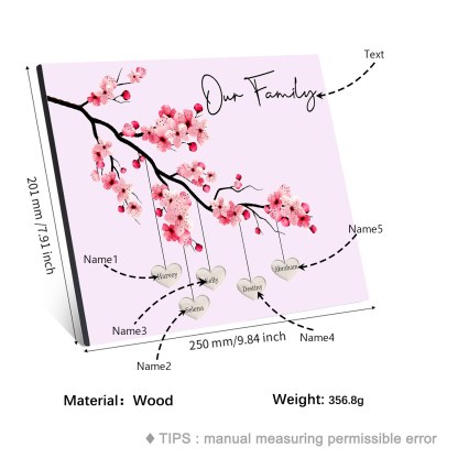 Personalized Plum Blossom Family Tree Picture Board Keepsake Wood Signs Photo Frame Engrave 5 Names