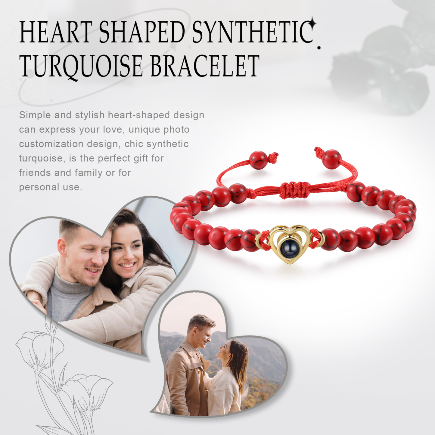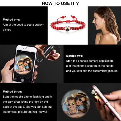 🌟 Use the mobile flashlight behind the crystal lens to project information and photos onto the wall or surface of your choice. You can add your and your partner's photo to make these bracelets a unique and meaningful gift, emphasizing your special connection.
