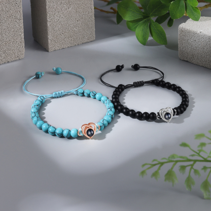 Personalized Projection Beaded Bracelet Customized Photo Bracelet Set Adjustable Bracelet Personalized Gift for Couples