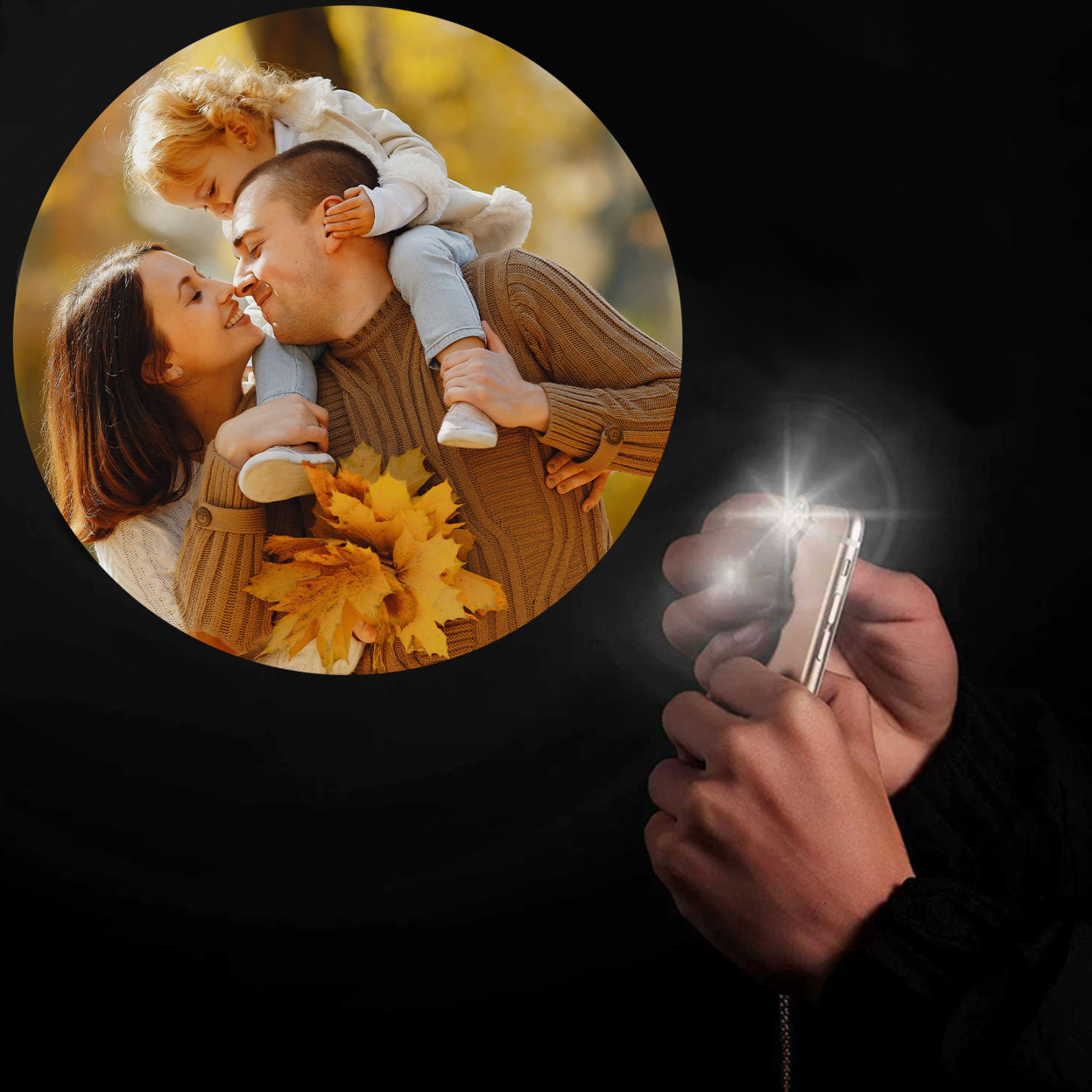 🌟 Use the mobile flashlight behind the crystal lens to project information and photos onto the wall or surface of your choice. You can add your and your partner's photo to make these bracelets a unique and meaningful gift, emphasizing your special connection.