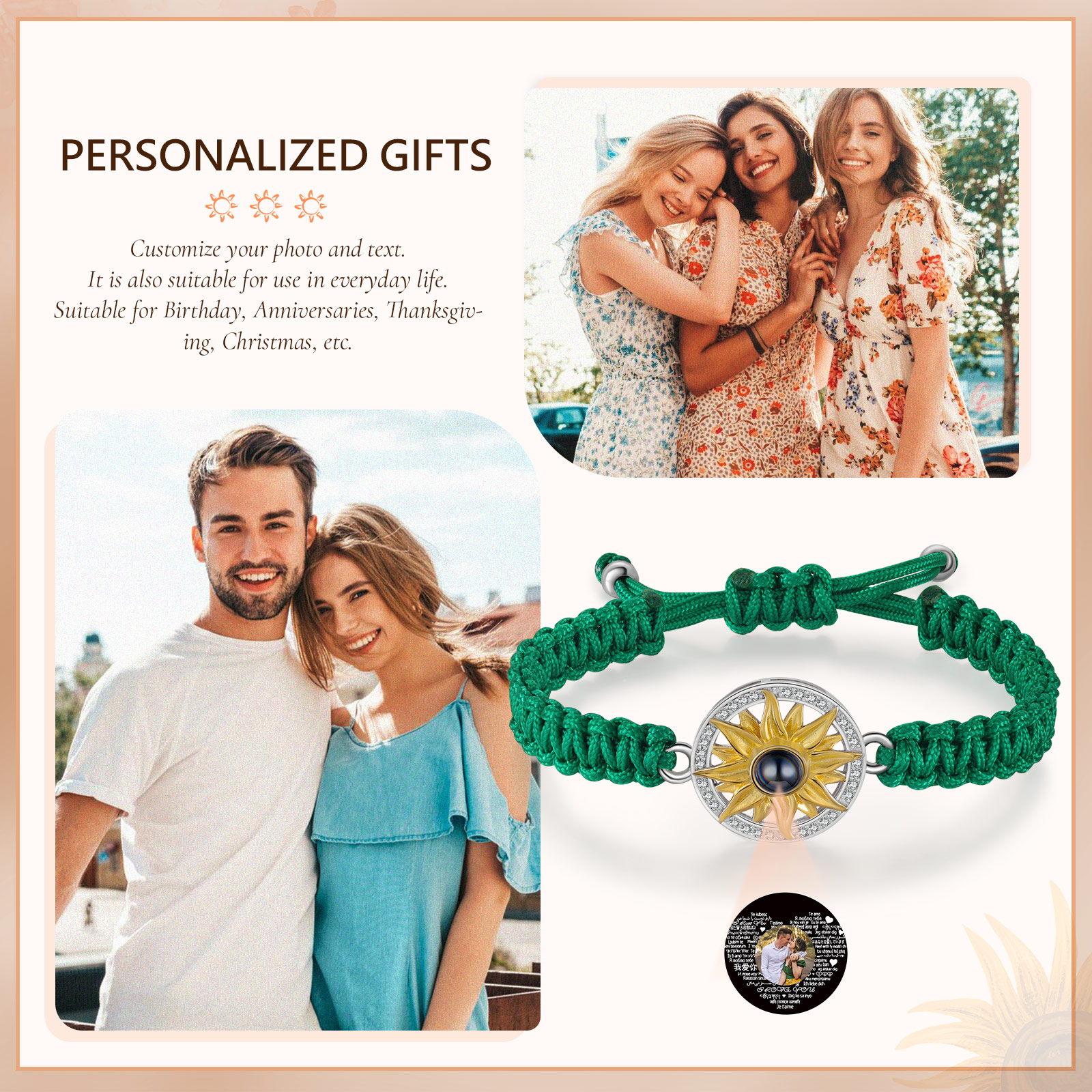 Personalized Projection Weave Bracelet Customized Colorful Photo+Copywriting Bracelet Set Adjustable Bracelet Personalized Gift for Couples