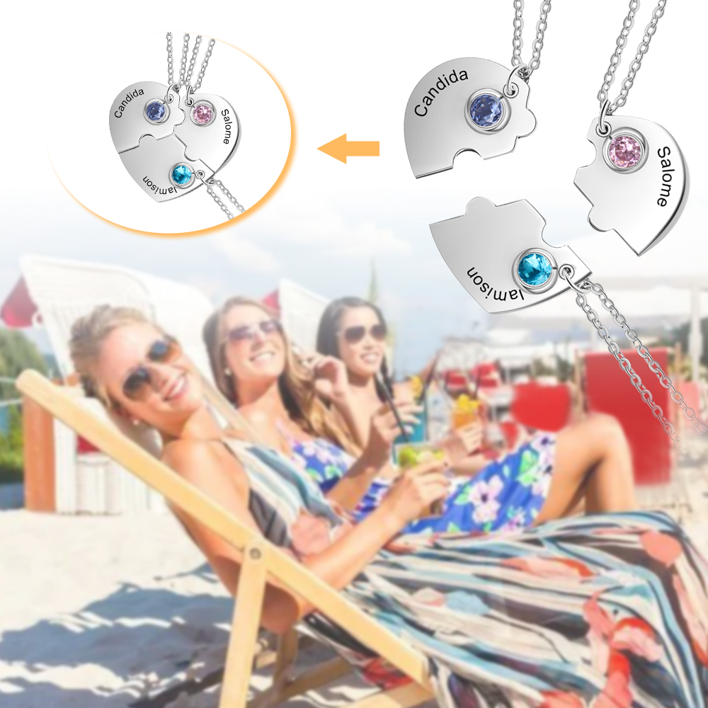 Personalized Puzzle Necklace With Birthstone Custom 3 Names Gifts For Mom BBF Friendship Style