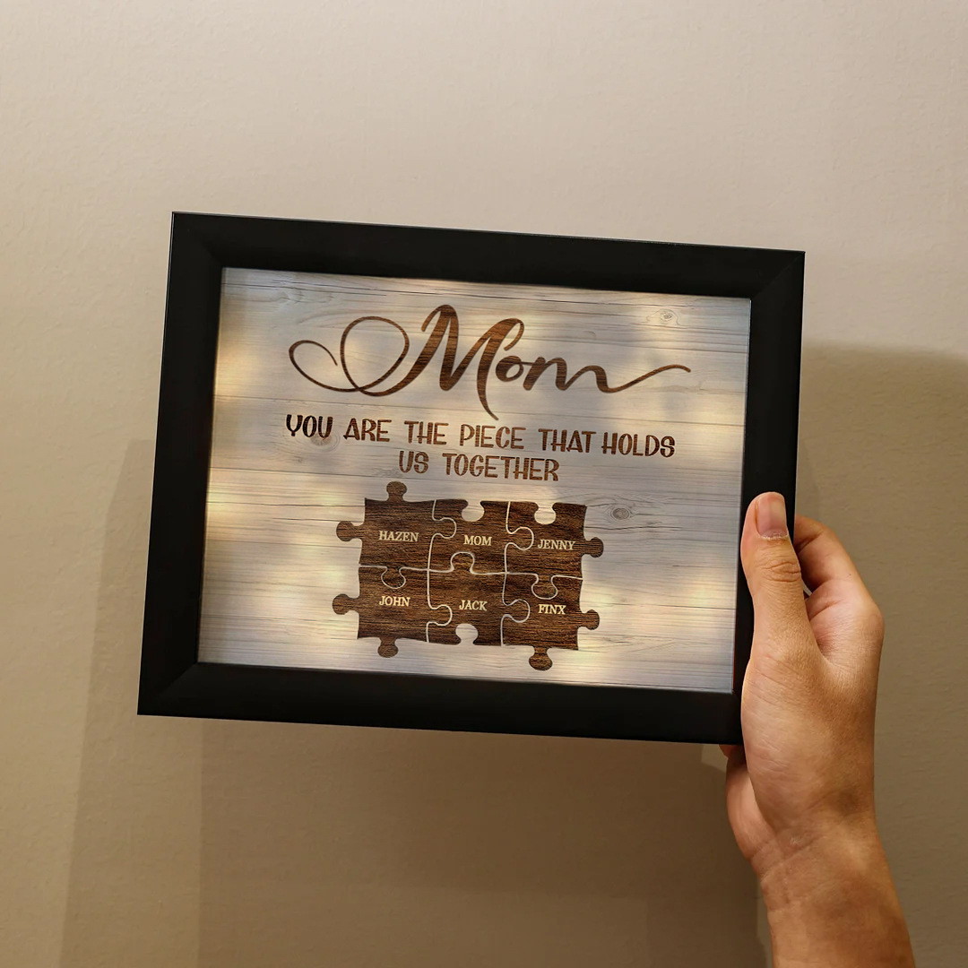 Personalized Puzzle Picture Frame With Light Custom 7 Names Home Decor - You are the piece that holds us together